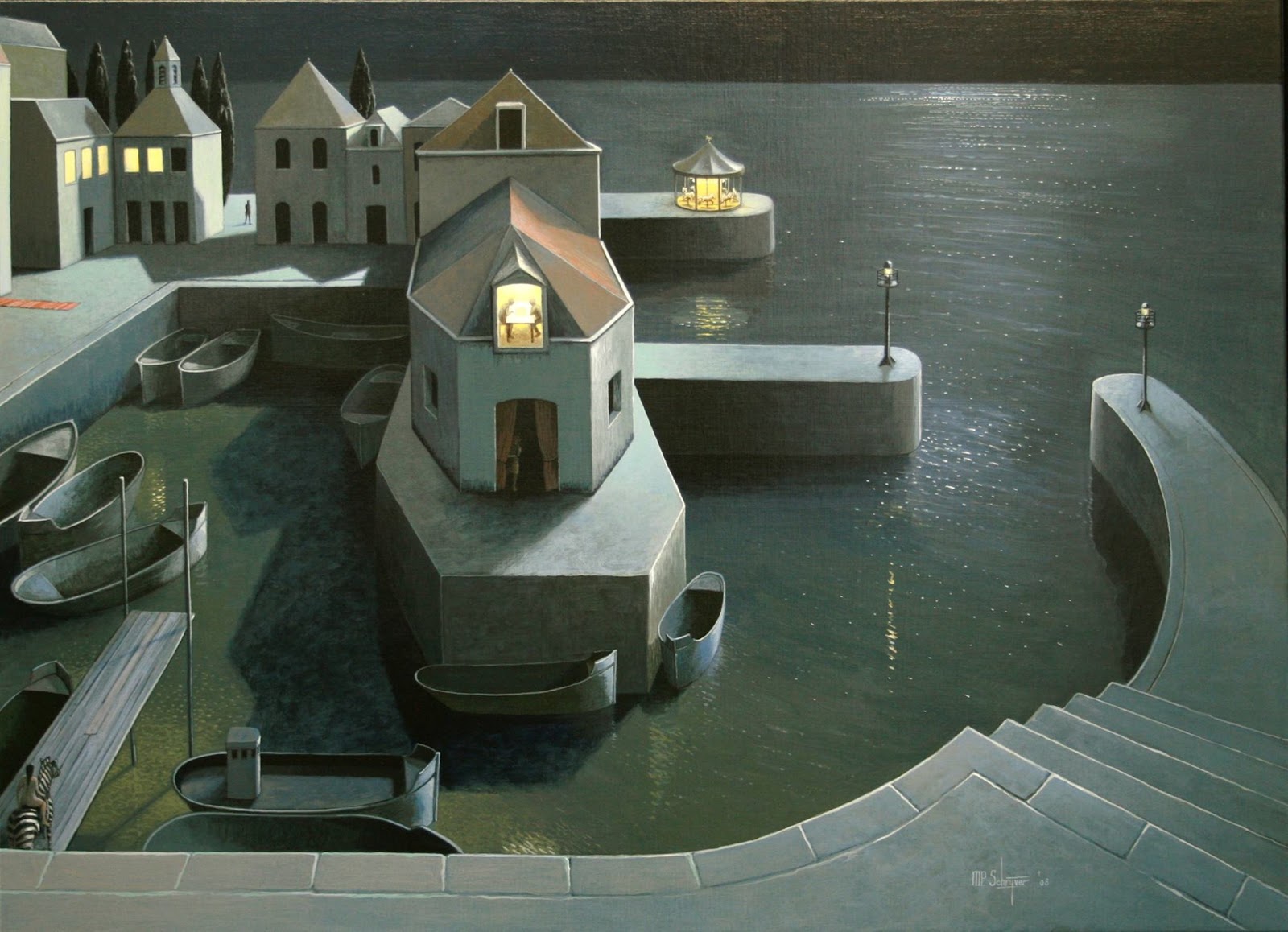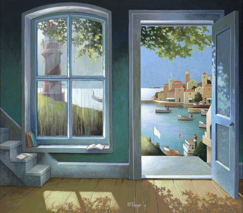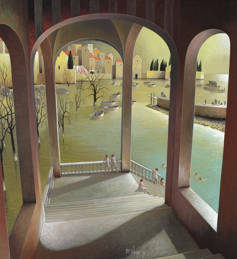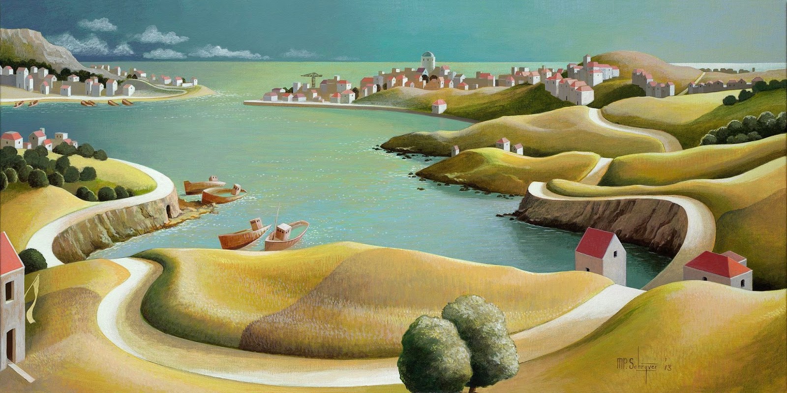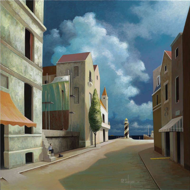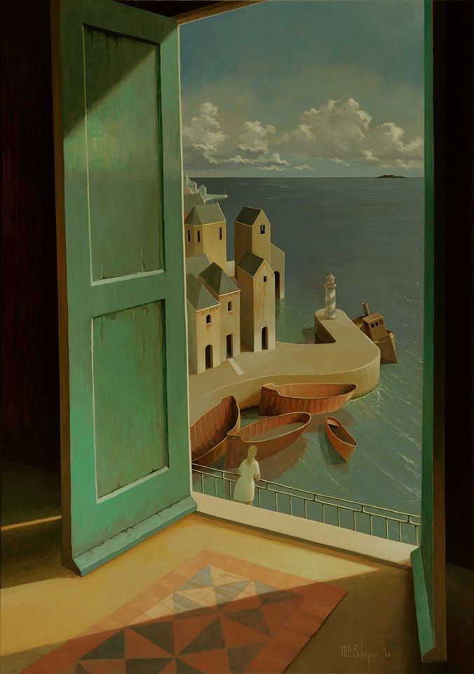 I discovered Michiel Schrijver (Dutch, born 1957) through his painting Silence of the sea, 2013, via this FB post: