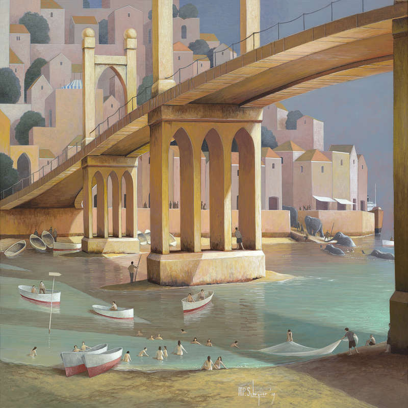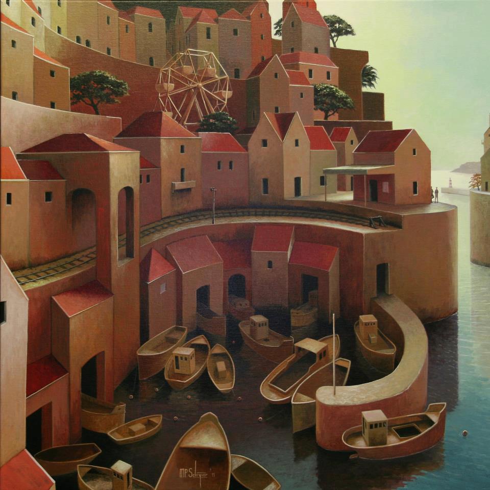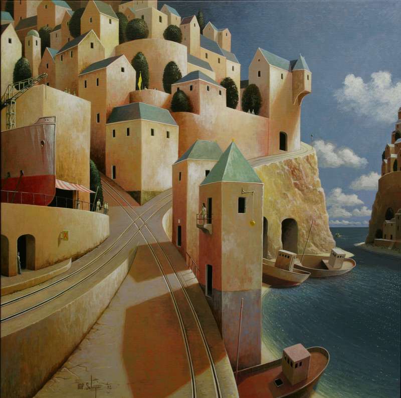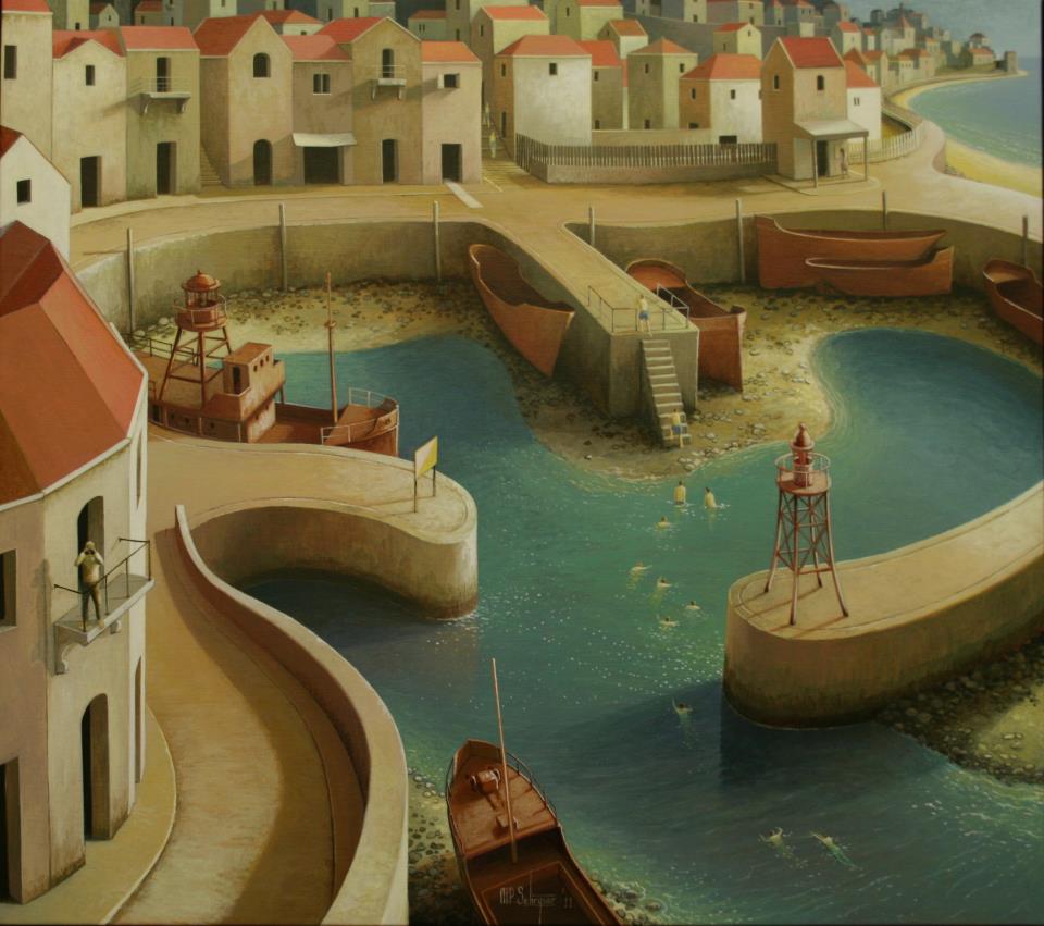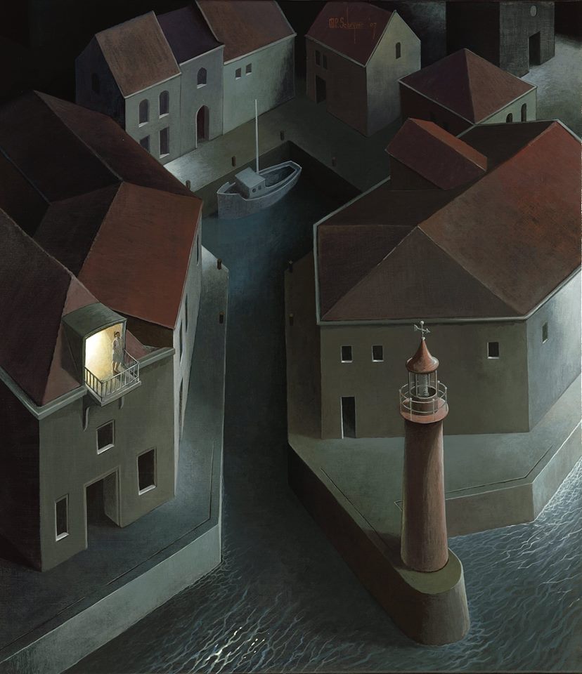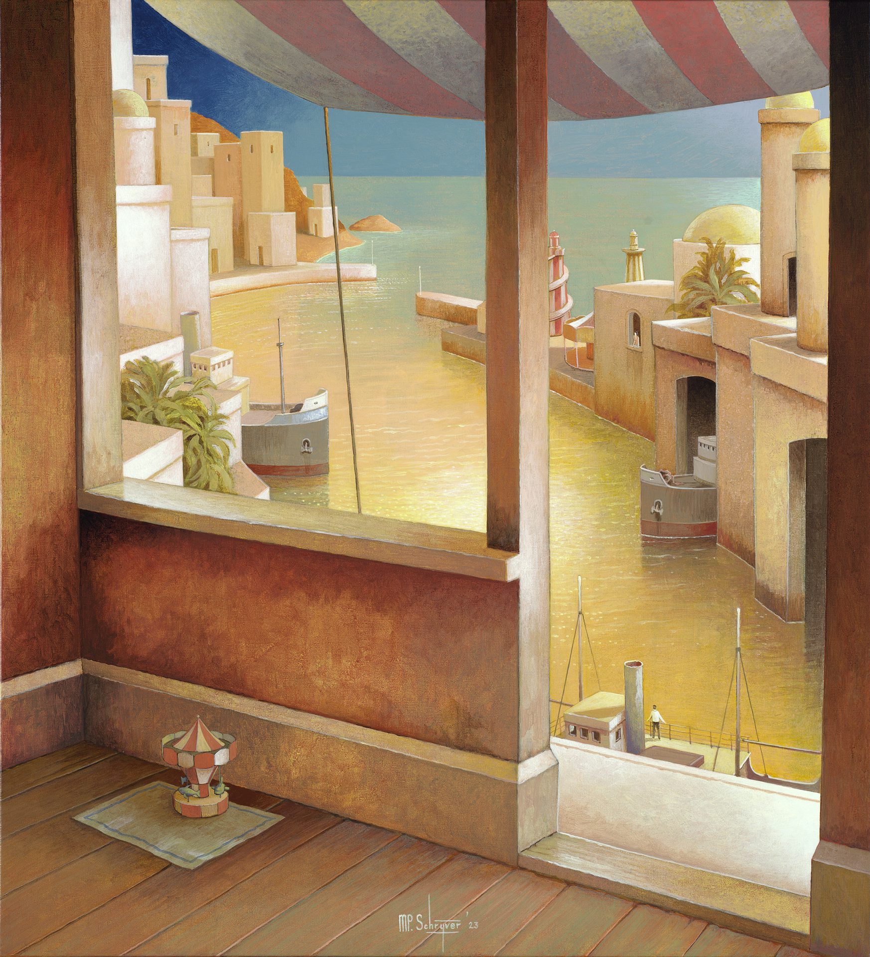 I discovered Michiel Schrijver (Dutch, born 1957) through his painting Silence of the sea, 2013, via this FB post: