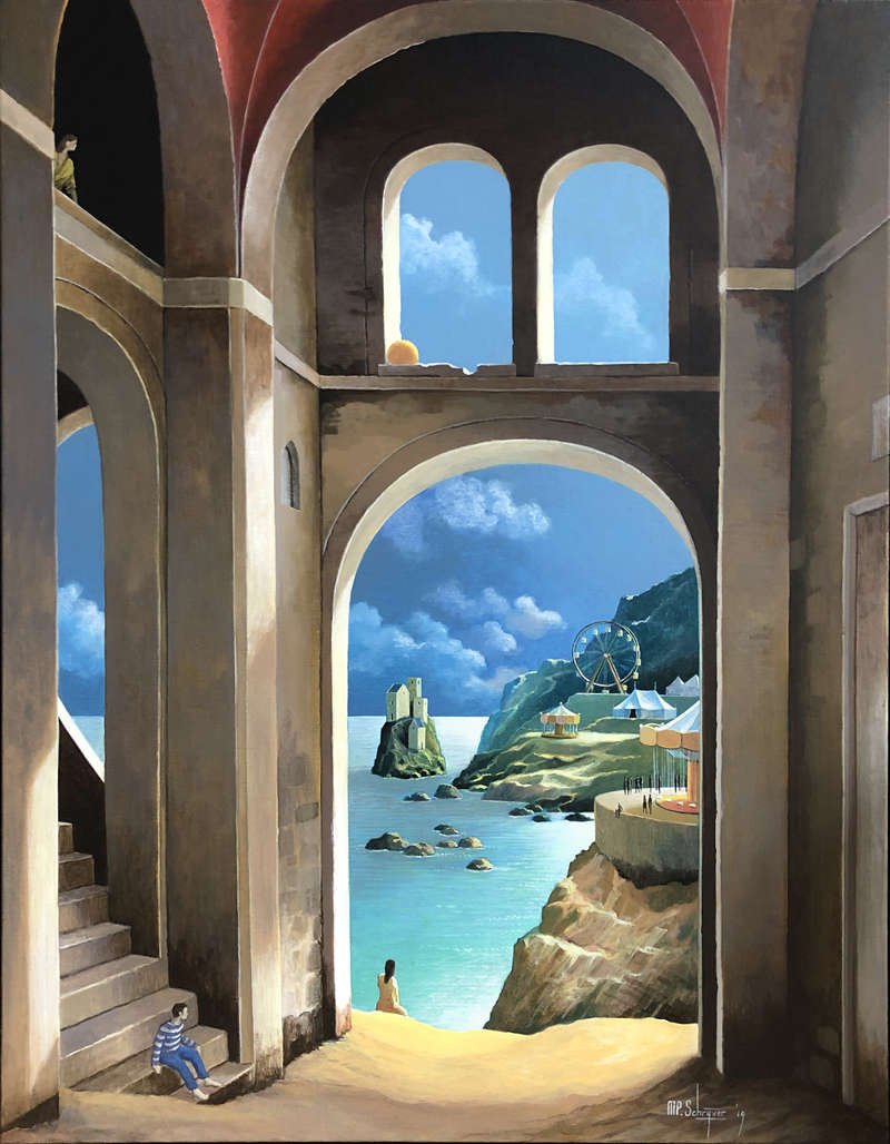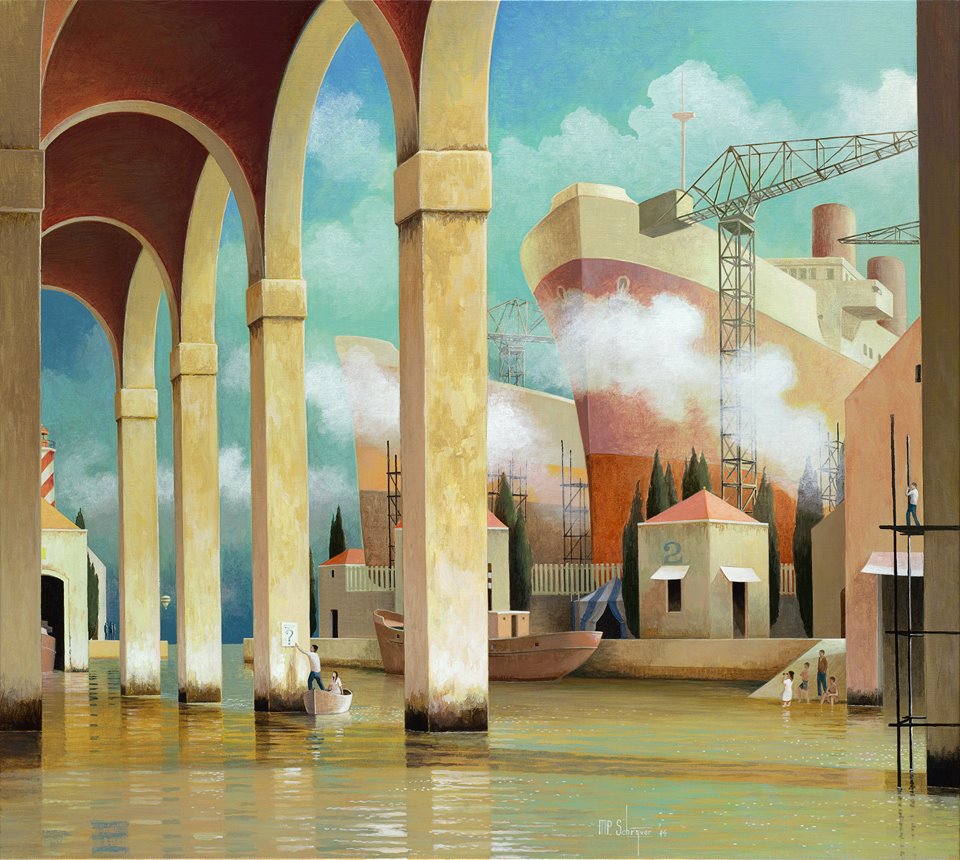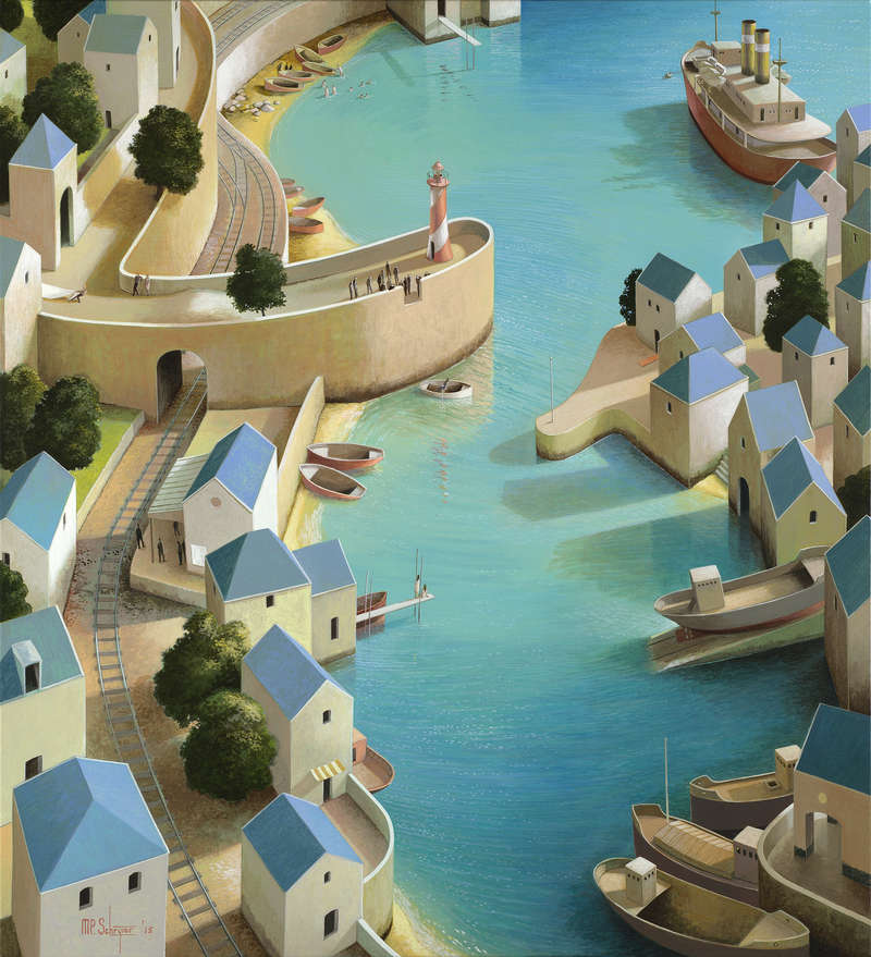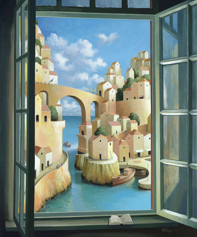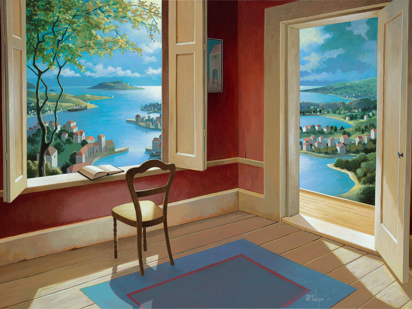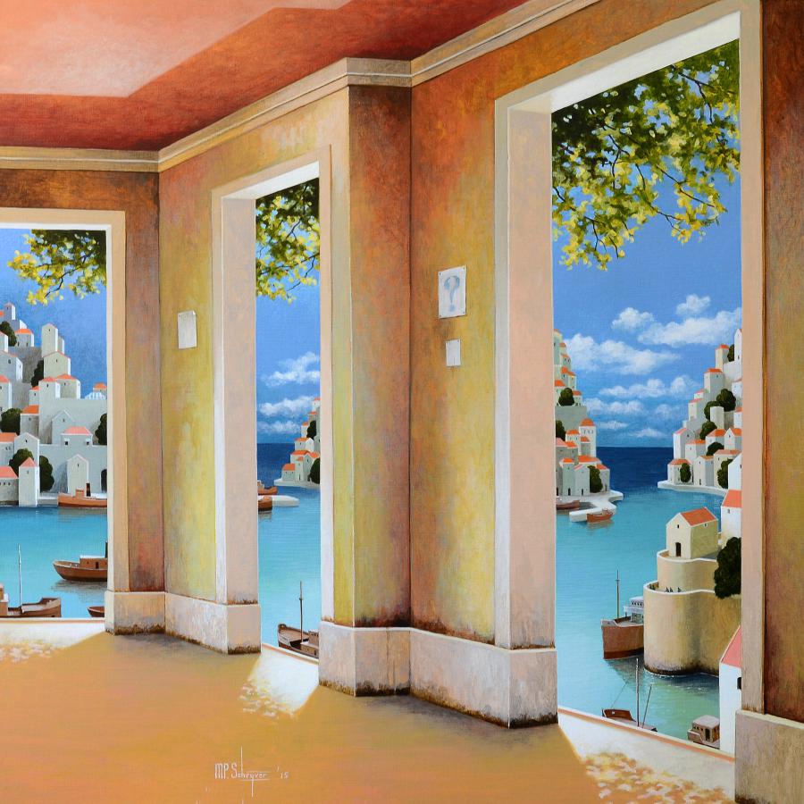 I discovered Michiel Schrijver (Dutch, born 1957) through his painting Silence of the sea, 2013, via this FB post: