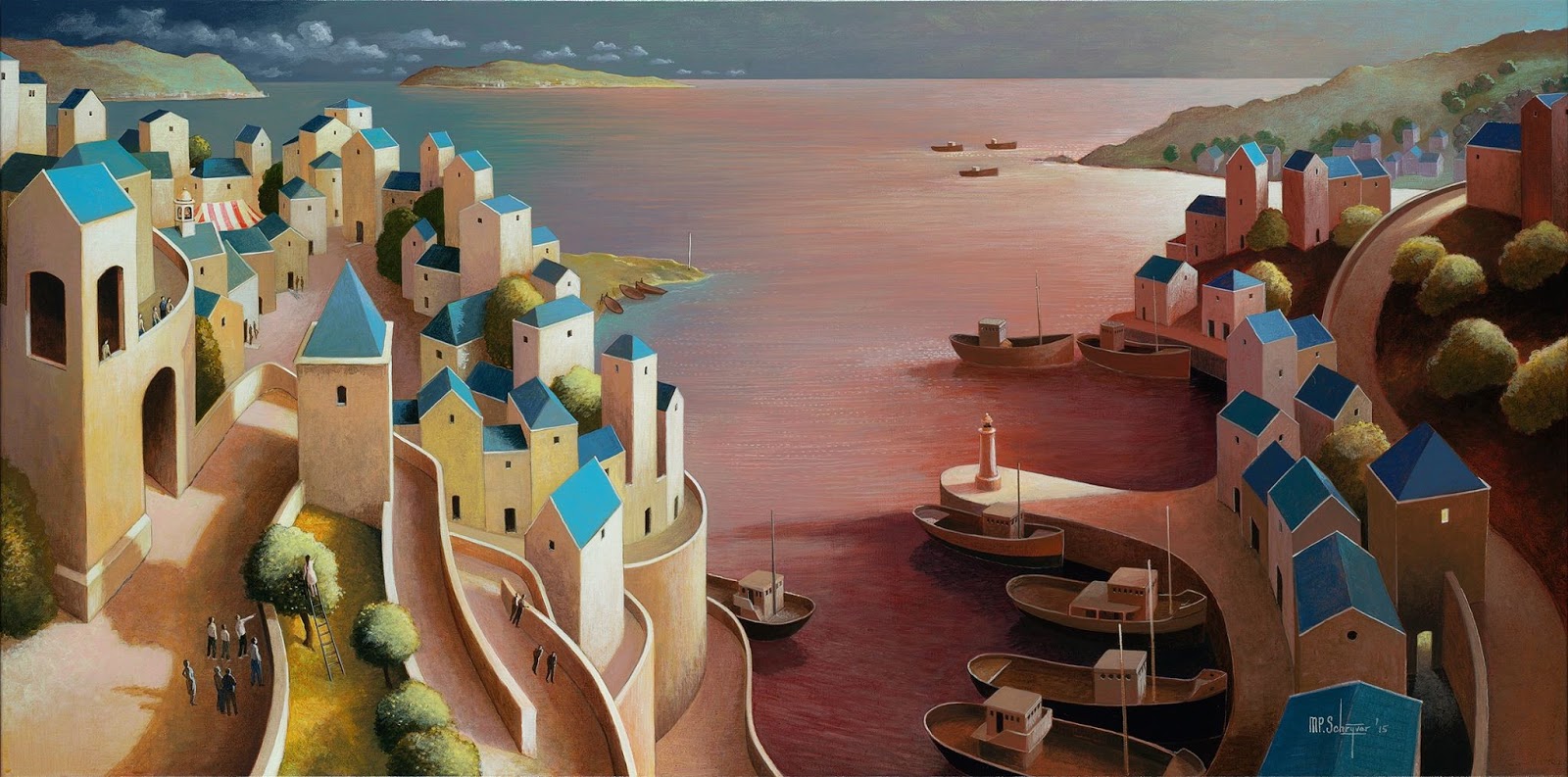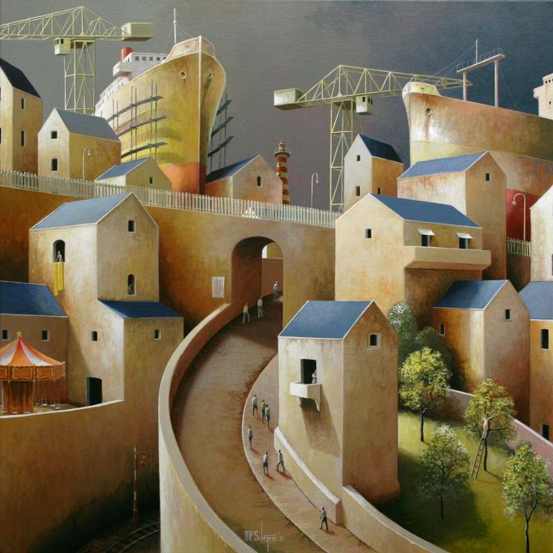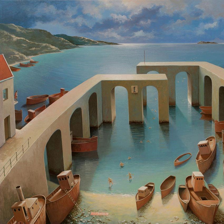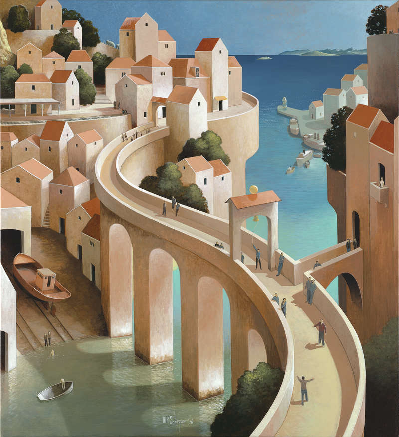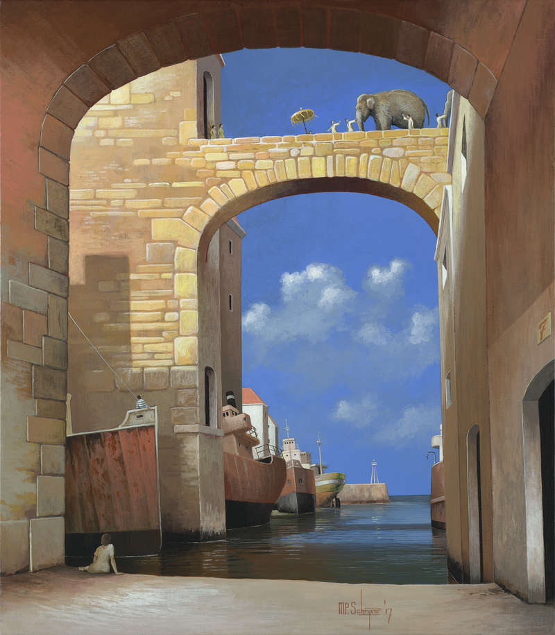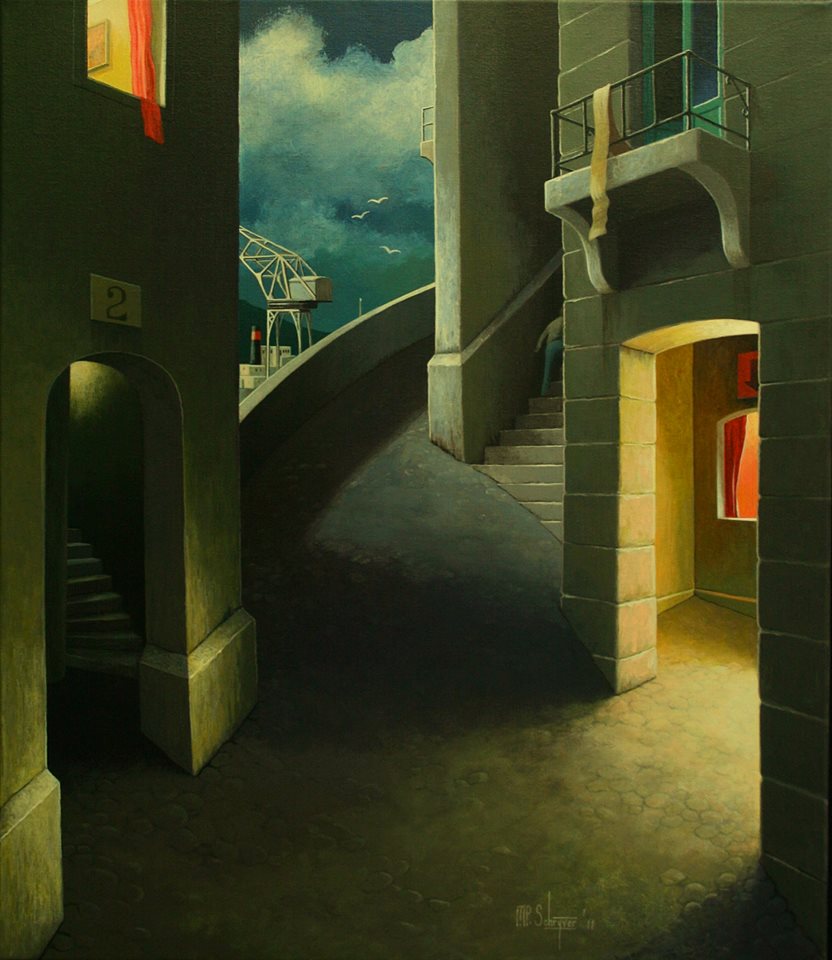 I discovered Michiel Schrijver (Dutch, born 1957) through his painting Silence of the sea, 2013, via this FB post: