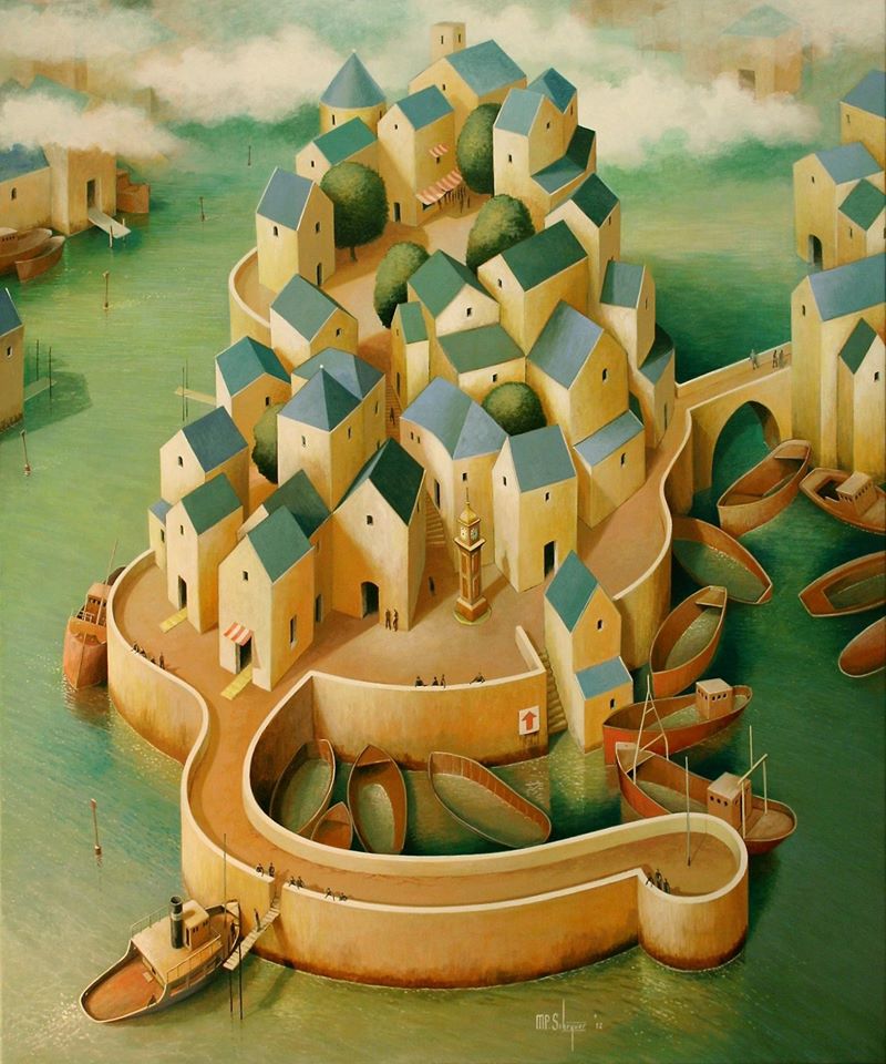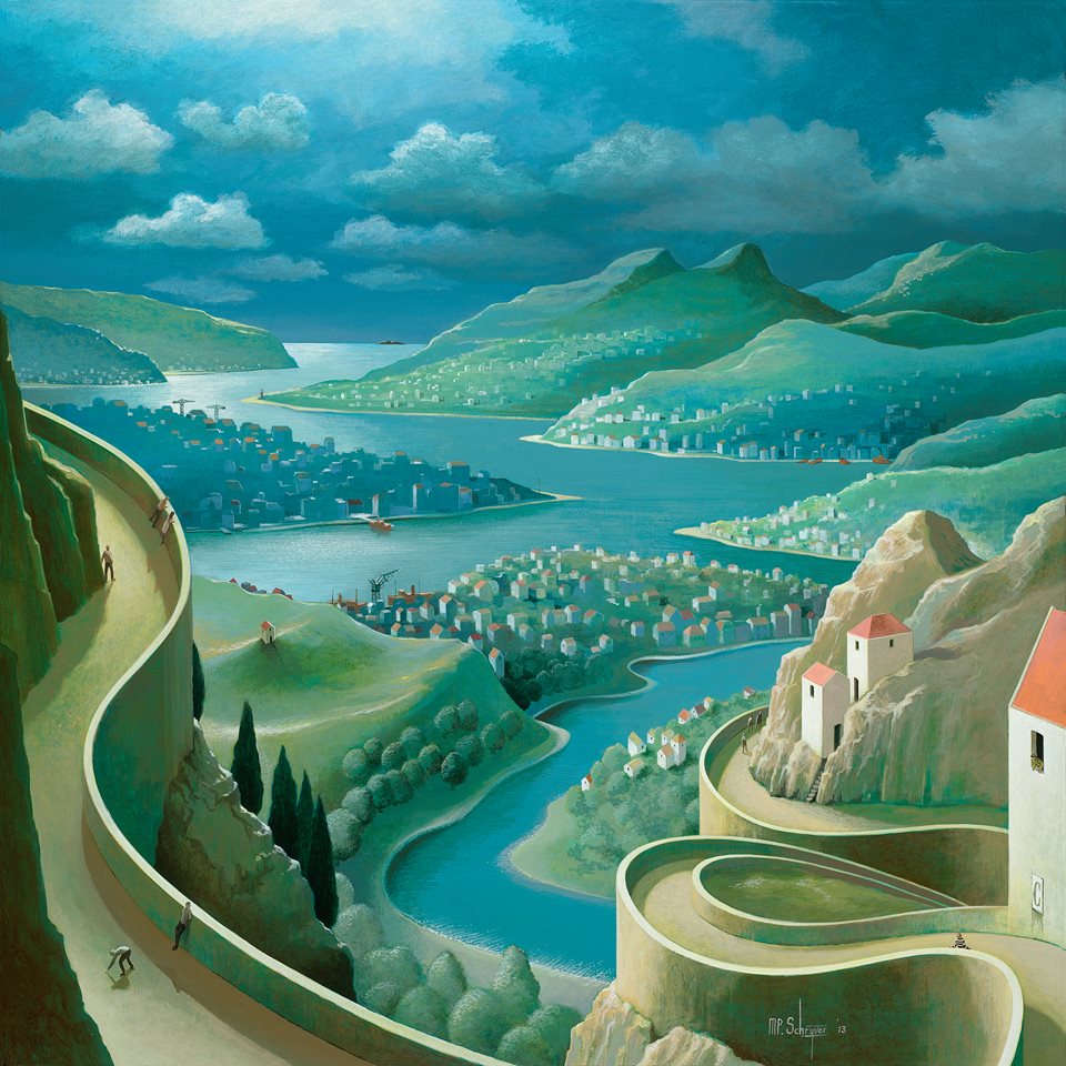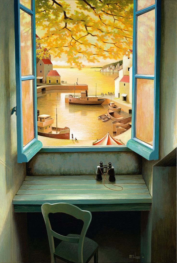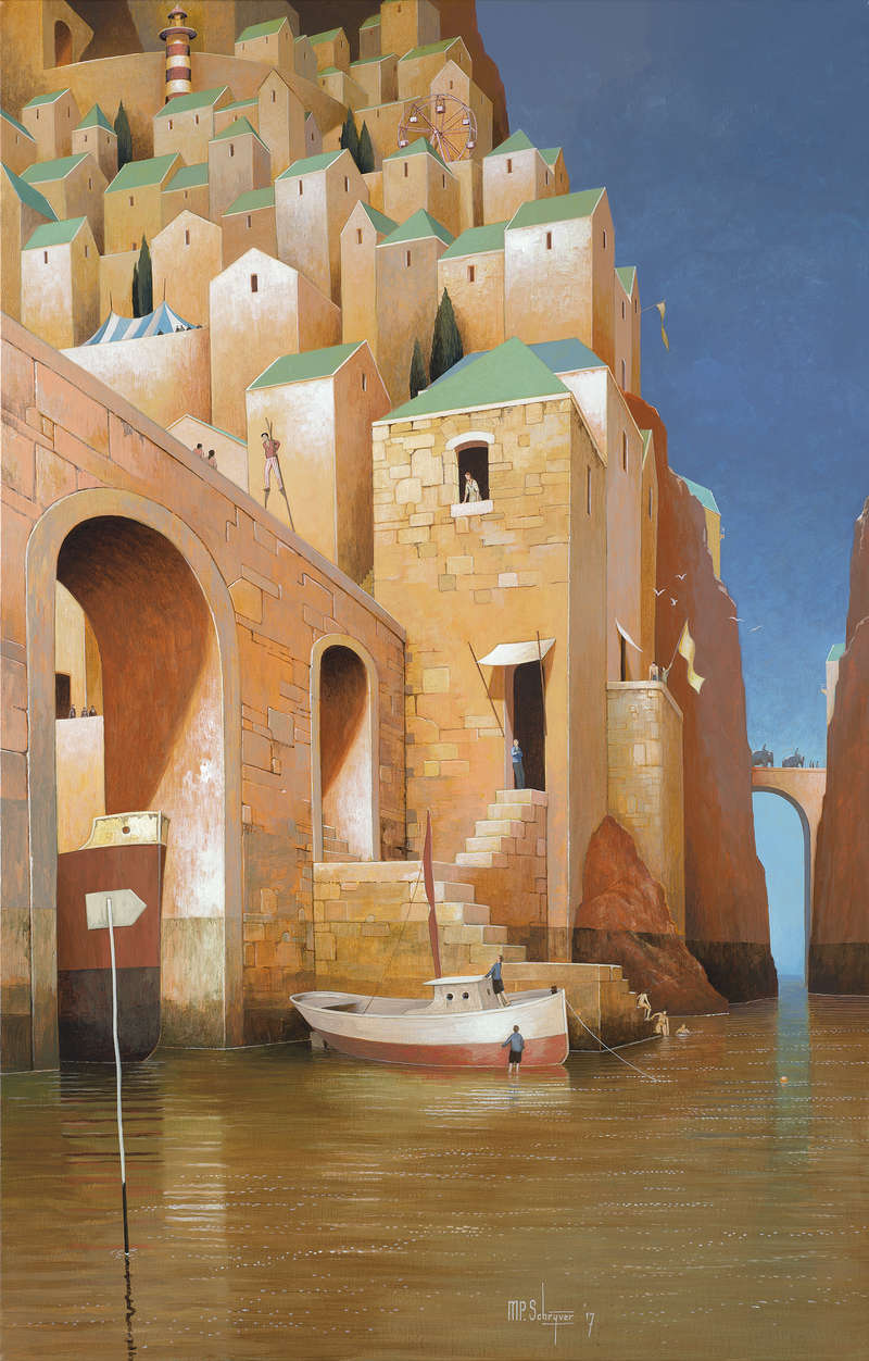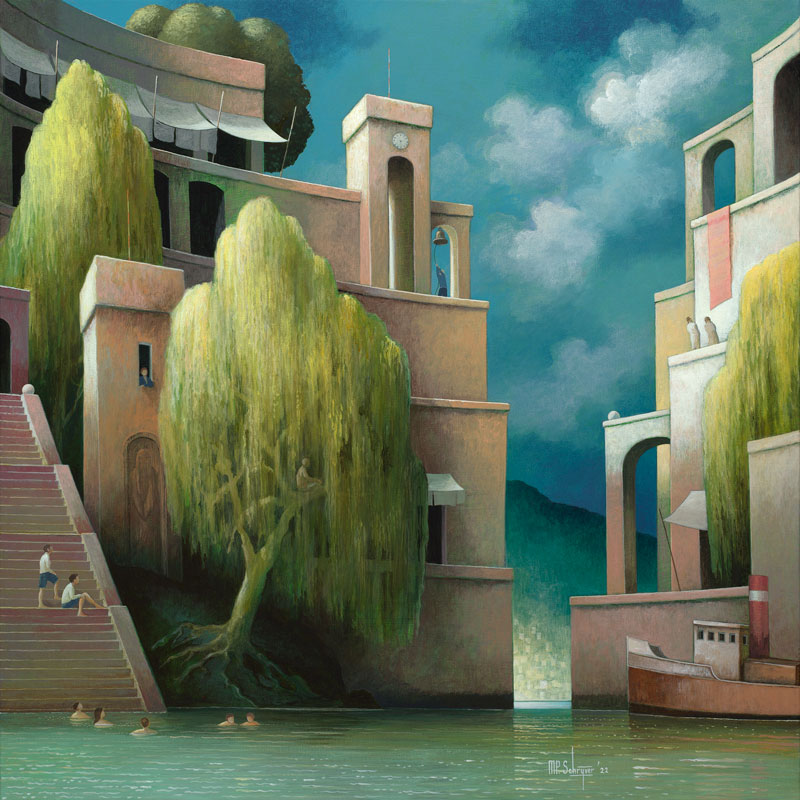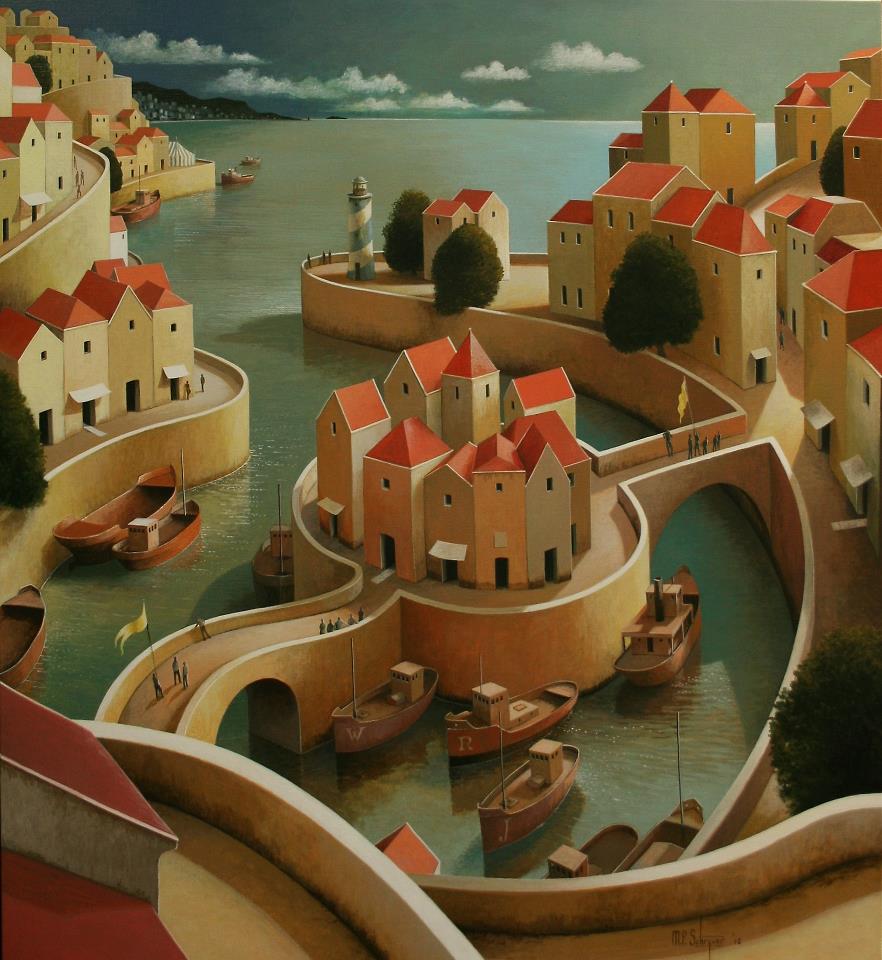 I discovered Michiel Schrijver (Dutch, born 1957) through his painting Silence of the sea, 2013, via this FB post: