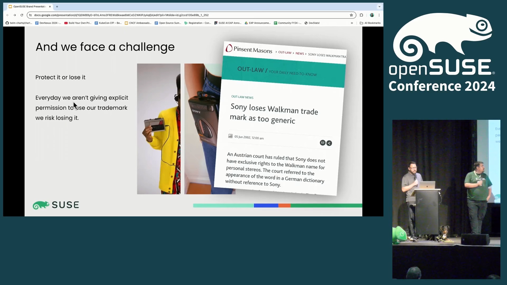 OTOH, wait and see – and accepting the risk that we might have to act in 5, 10 or 100 years – avoids all the foreseeable and very real issues a rebrand will cause. And who knows, maybe a future owner of SUSE is a big fan of openSUSE and fulfils all our dreams. I know nobody mentioned this option before, but it’s as likely or unlikely as the worst-case option.