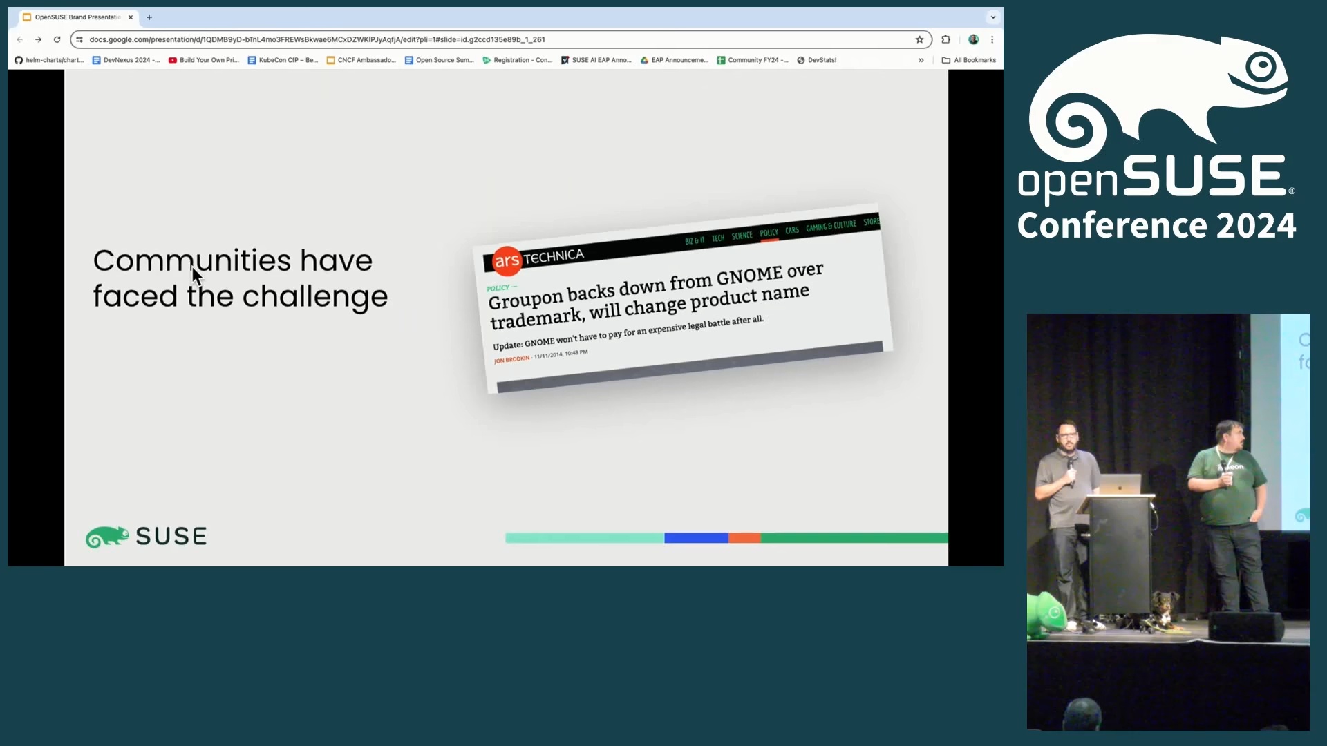My personal opinion is that while SUSE is willing to work with us on rebranding and the majority of the community seems onboard with it given there are good reasons and we have help to mitigate the negatives now is probably the right time because the opinion of SUSE may very well change sometime in the future.