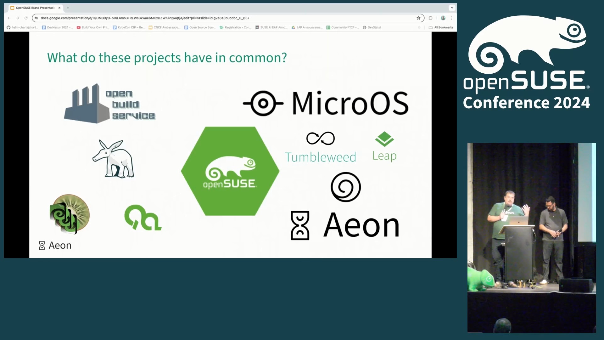 4. Renaming the project and its distros isn’t an easy task IMO. To me, openSUSE’s OS offering is quite rich: Leap (stable), Tumbleweed (pure rolling), Slowroll (slower roling), which can all be used in whatever way you want (server, desktop), plus modern contraptions and combinations of concepts: MicroOS (Micro Service OS), Aeon (MicroOS GNOME Desktop), Kalpa (MicroOS KDE Desktop), Argon (Leap with the latest KDE, à la KDE neon), Krypton (Tumbleweed with the latest KDE), and Leap Micro (Leap as MicroOS).