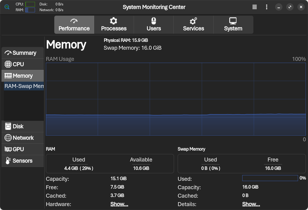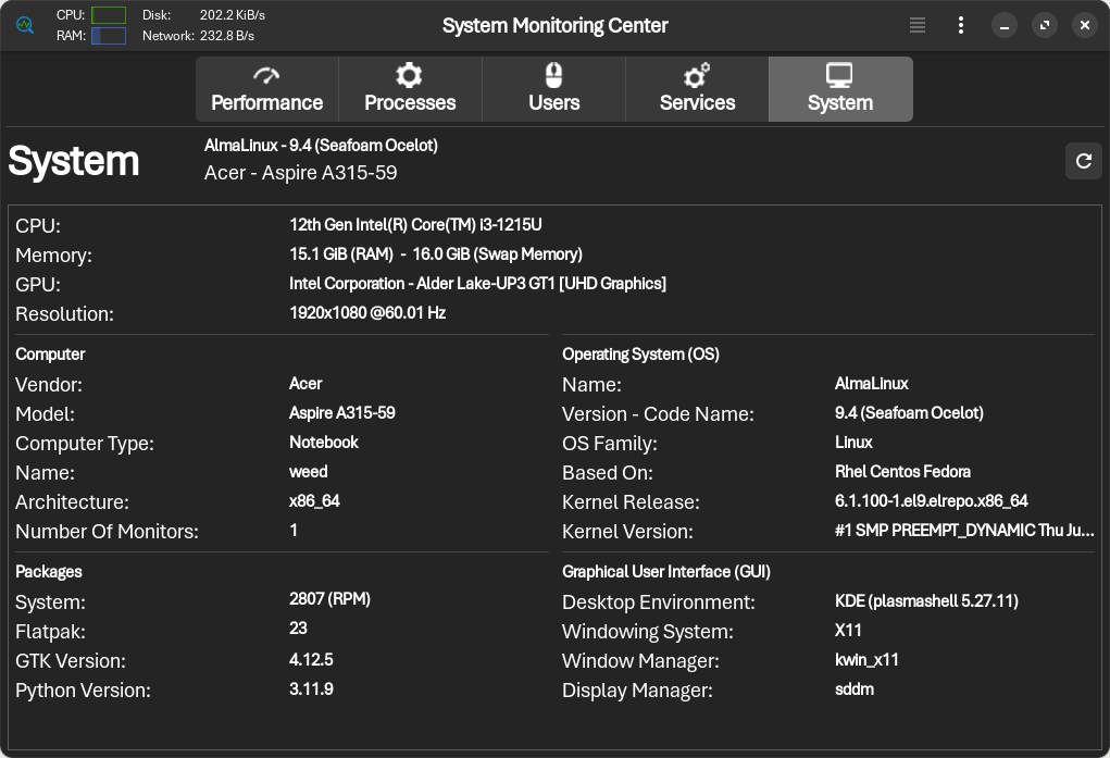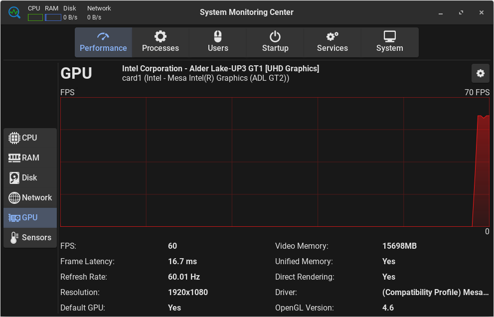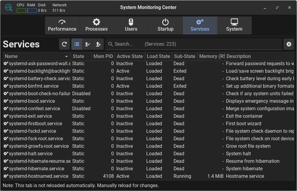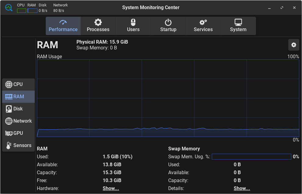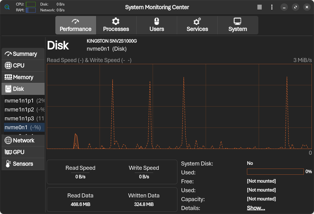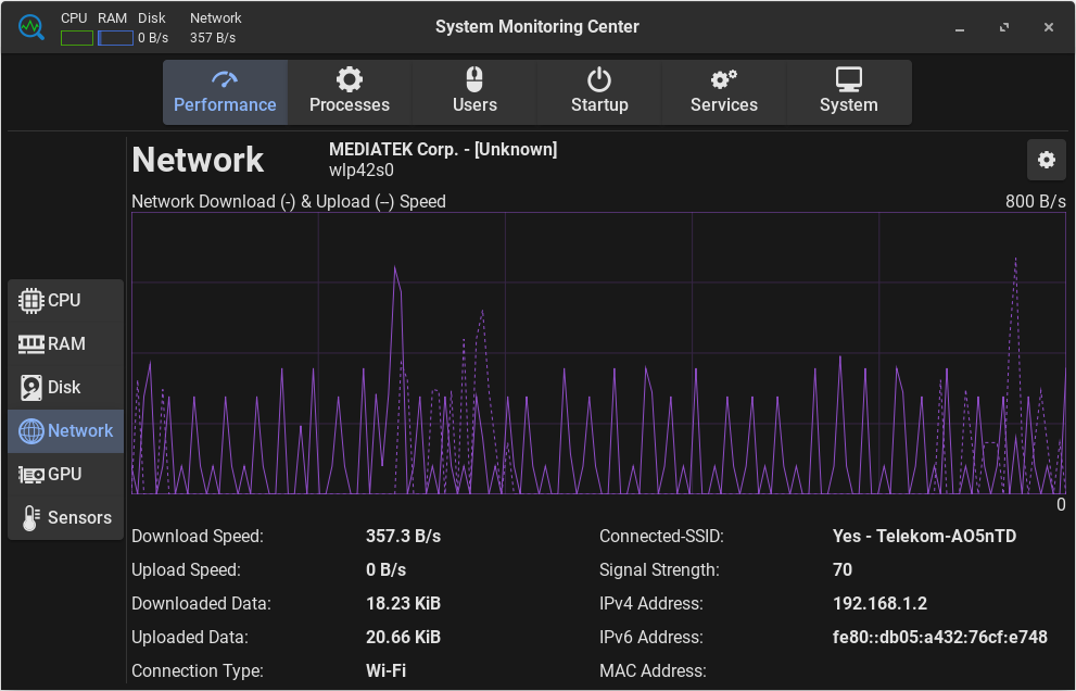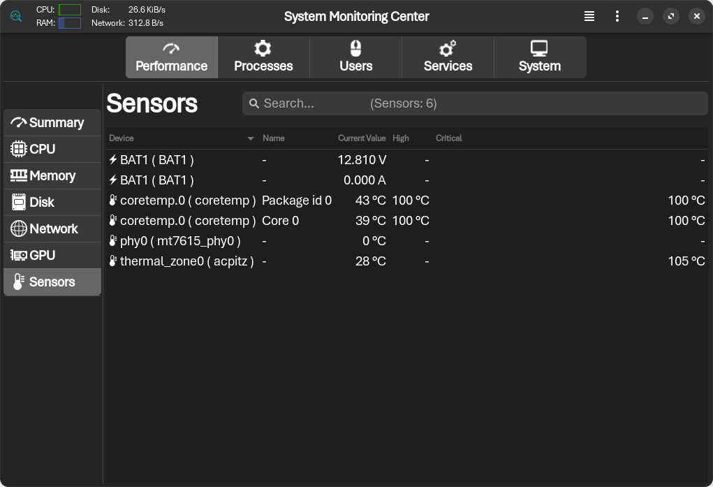 Linux Lite has a very nice System Monitoring Center, which is a fork of Hakan Dündar’s homonymous tool, which has been abandoned, unfortunately: