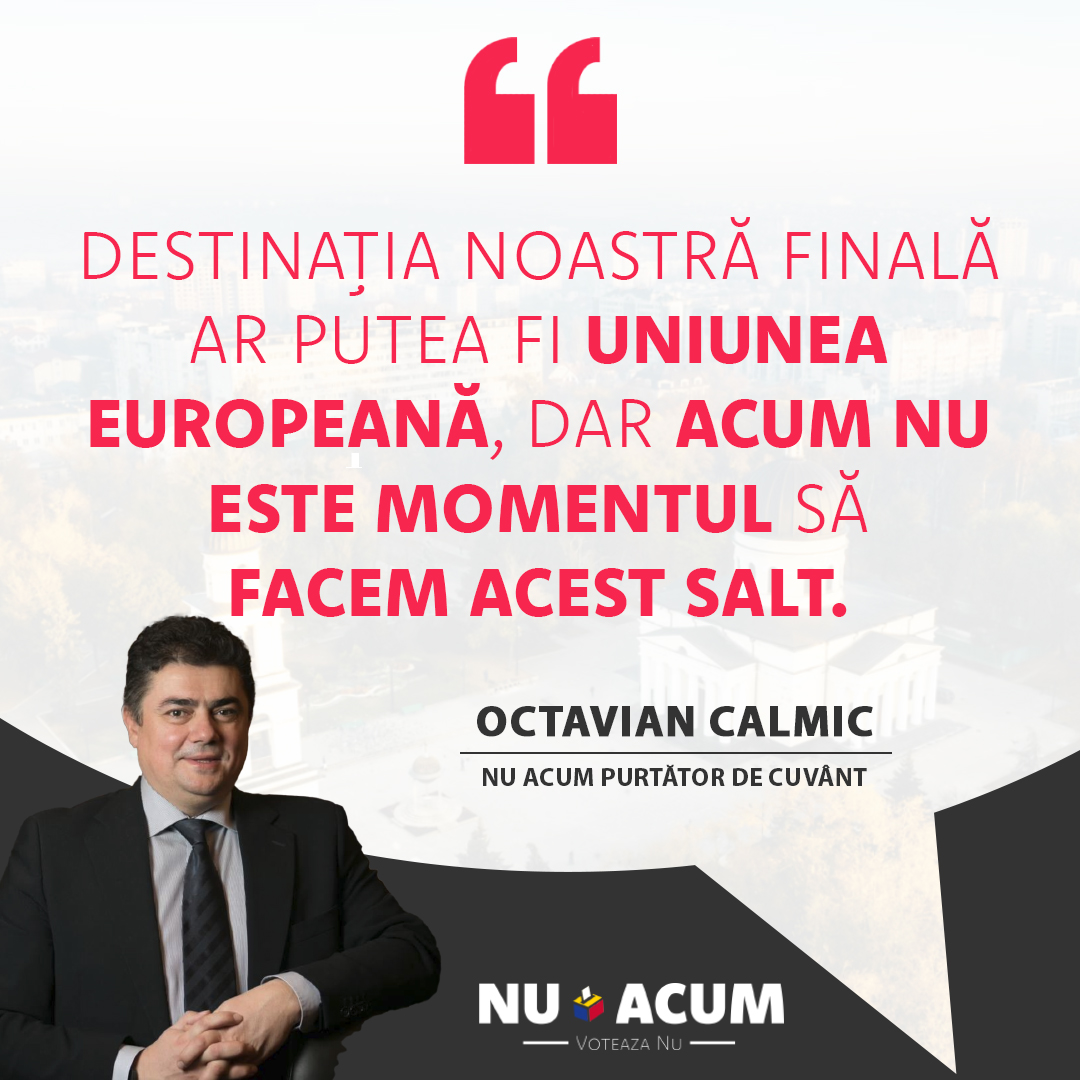 De pildă, acum vreo lună se vorbea de un site înființat de tovarășul Șor (RO, EN), anume NuAcum.eu, în mod evident pro-Moscova, și pervers în felul său: „nu acum, căci nu suntem pregătiți”. Cum ar veni, nu că n-am vrea, dar suntem prea săraci ca să ne-o permitem.