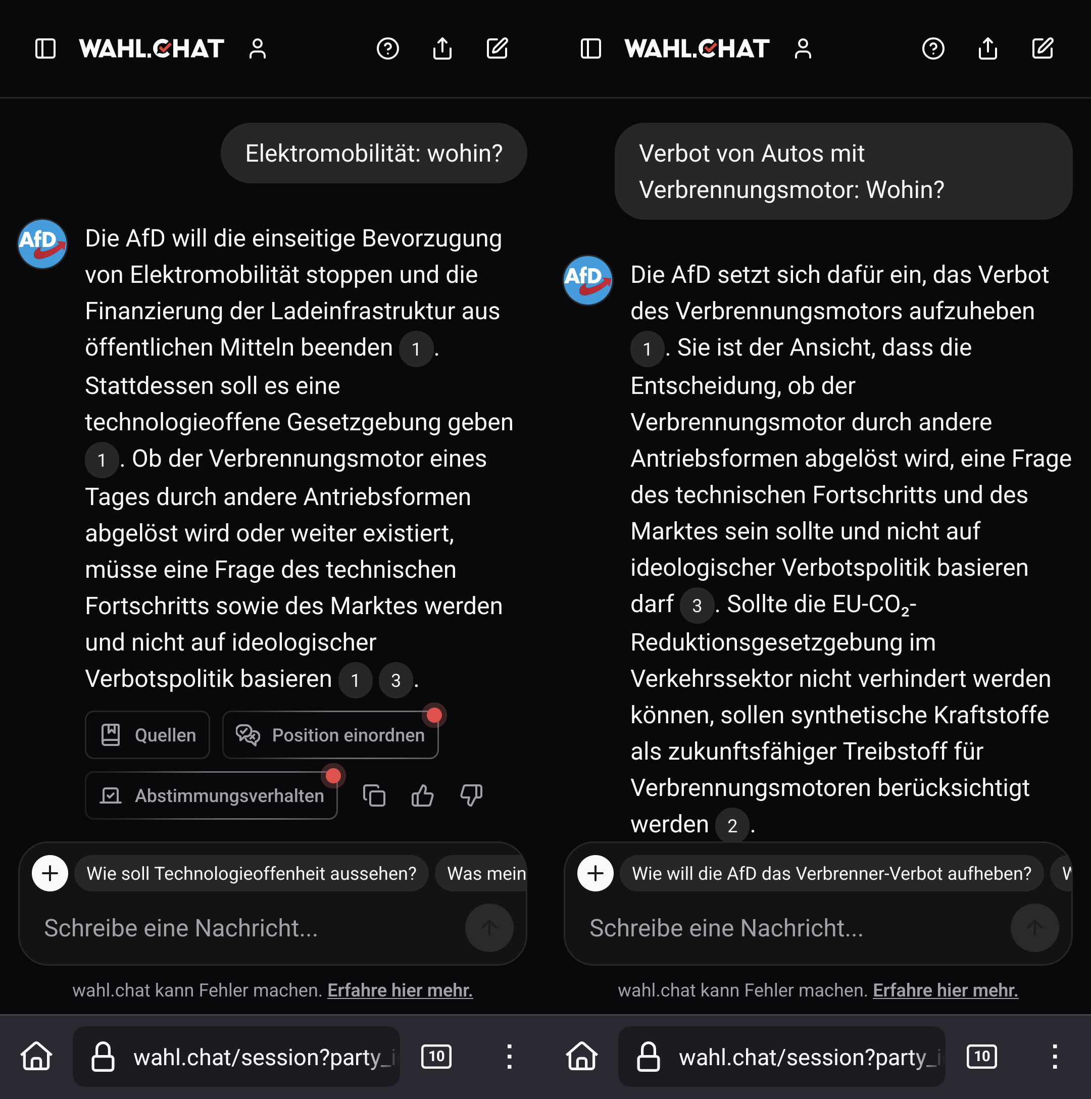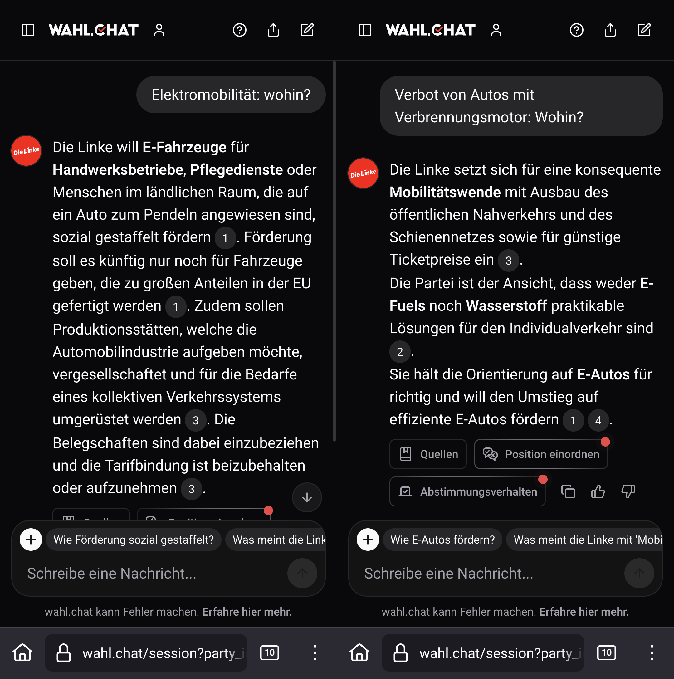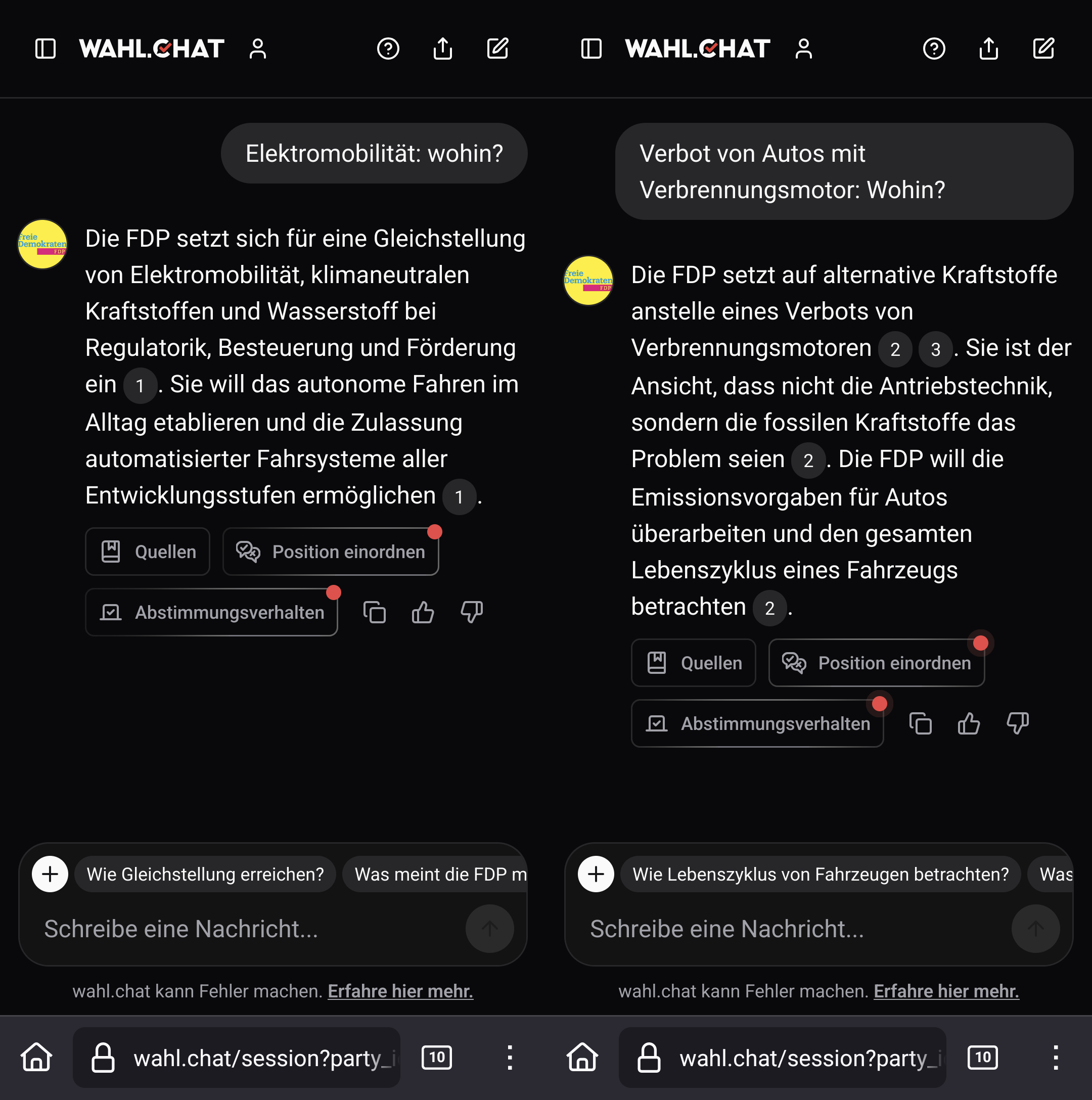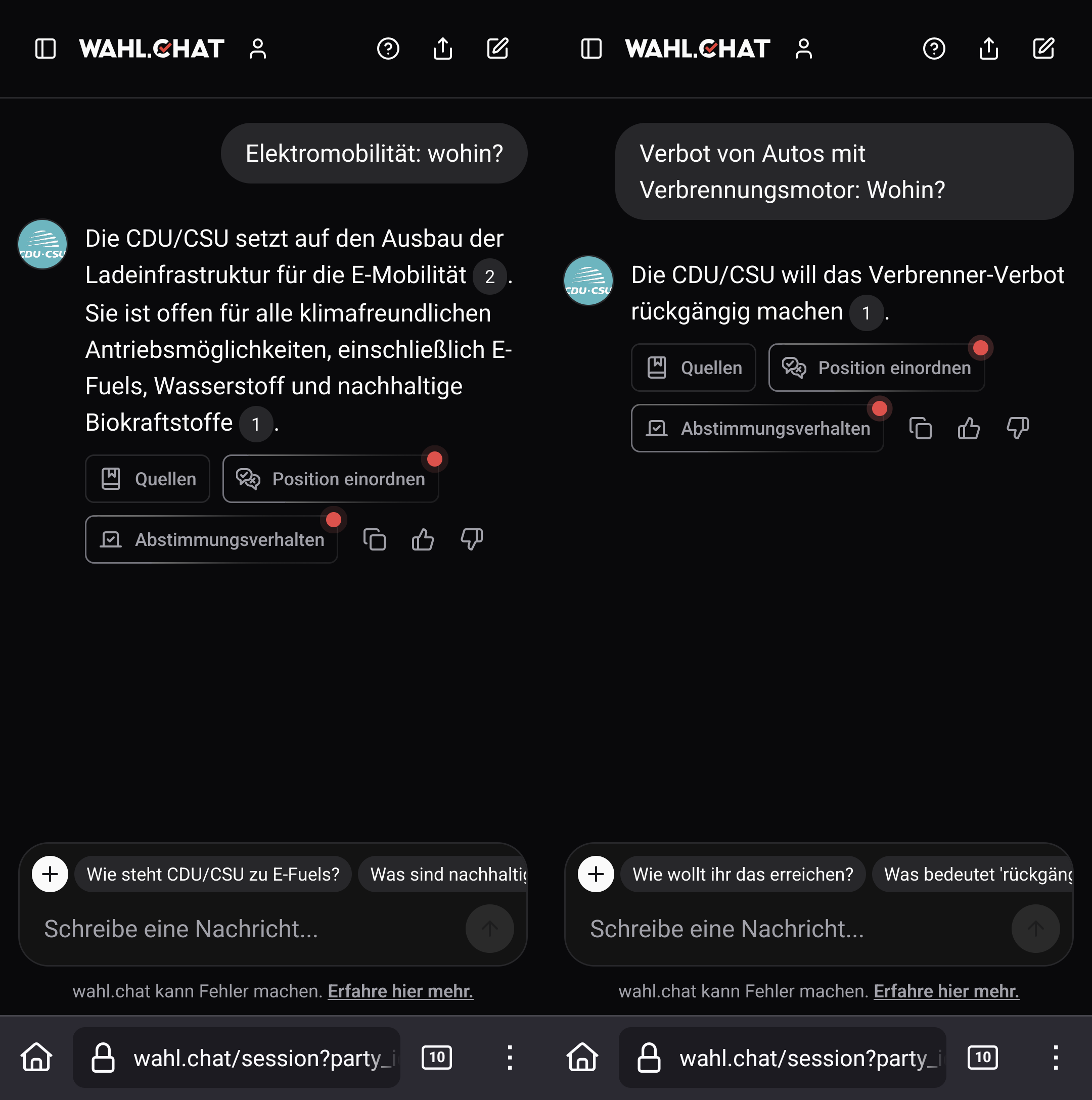 I asked Wahl.chat, a customized* AI chatbot that answers after having digged into a knowledge base of political declarations: