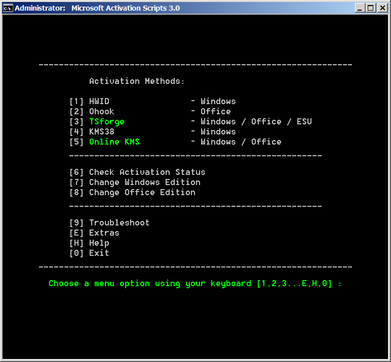 I learned about the Microsoft Activation Scripts (MAS) a couple of weeks ago. On the same site, one can read about many more Windows activation methods than I ever knew of, such as: HWID Activation; TSforge Activation; KMS38 Activation; Online KMS Activation. Only the last one was familiar to me, so to speak. Maybe the previous one two, I can’t be sure. Have an Activation Methods Chart. Oh, boy, so much crap for such crappy Microsoft products! (This being said, Win7 was rock-solid.)