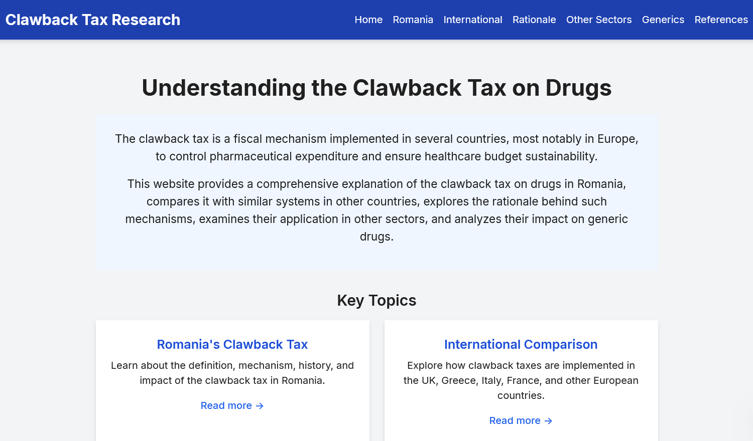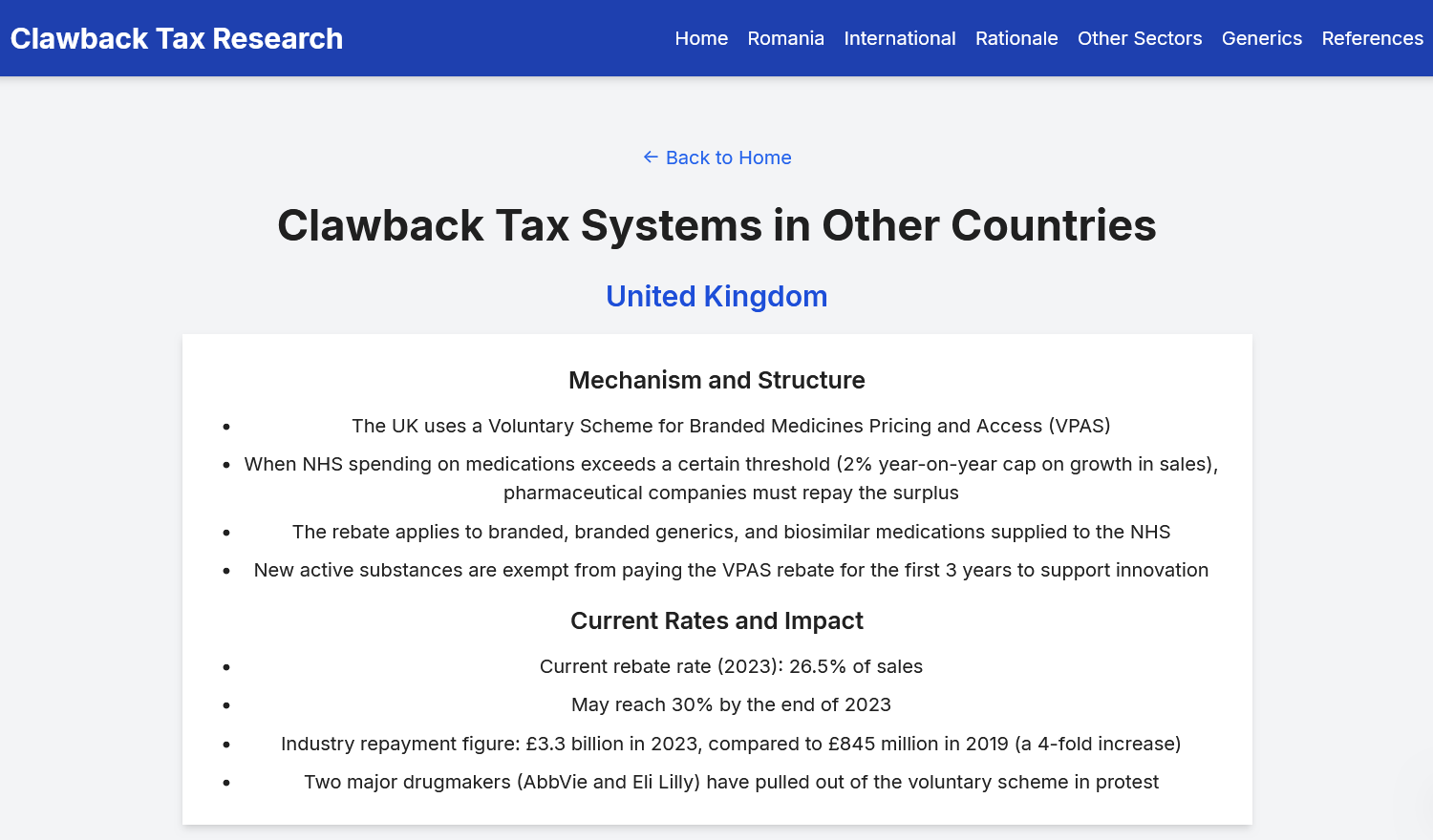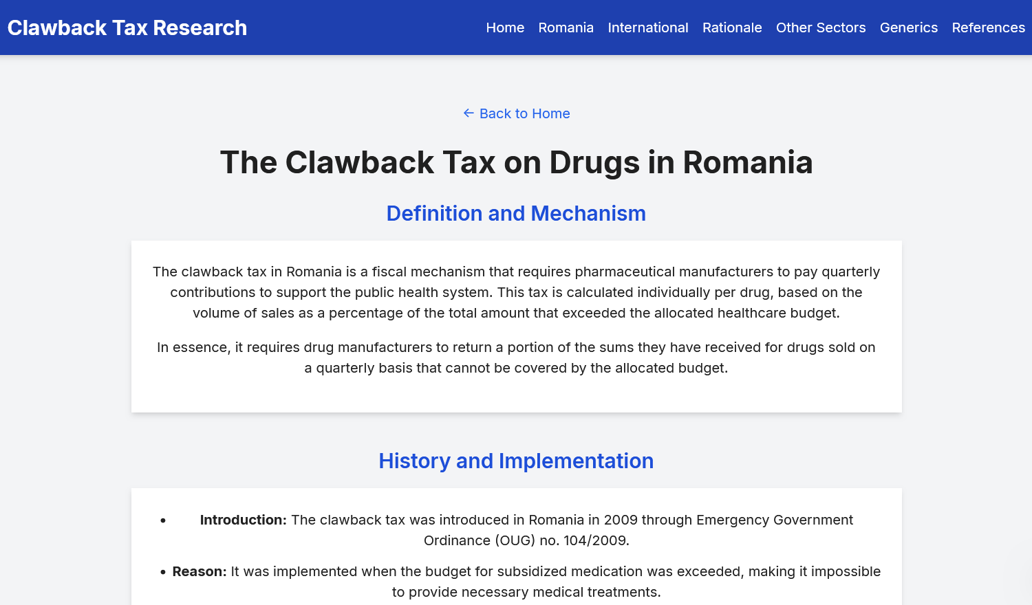 🤖 Here’s the task I gave Manus AI: “I don’t understand the clawback tax on drugs in Romania. What other countries have it? What is the rationale? Is it used for other products too elsewhere? How does it affect the generics?”