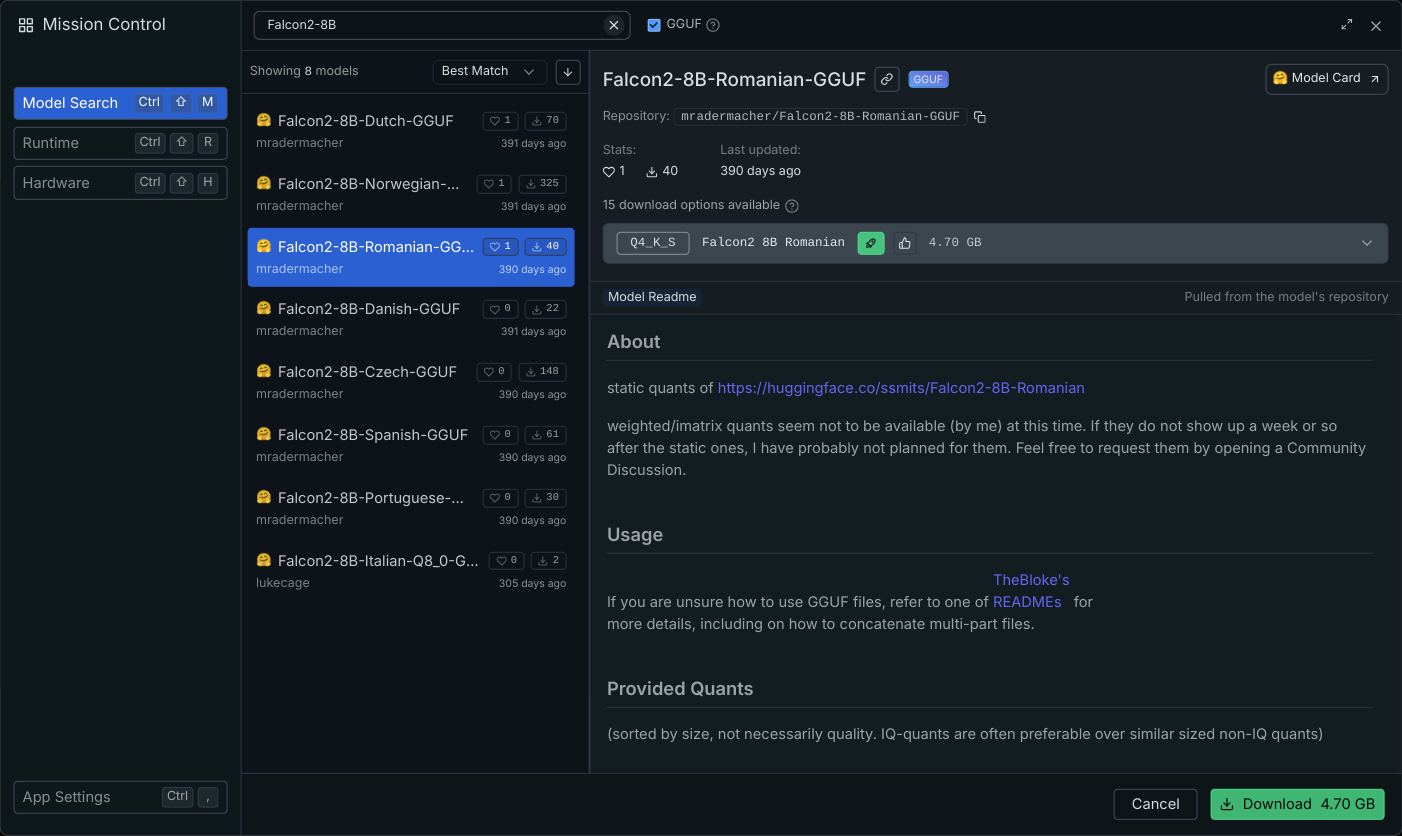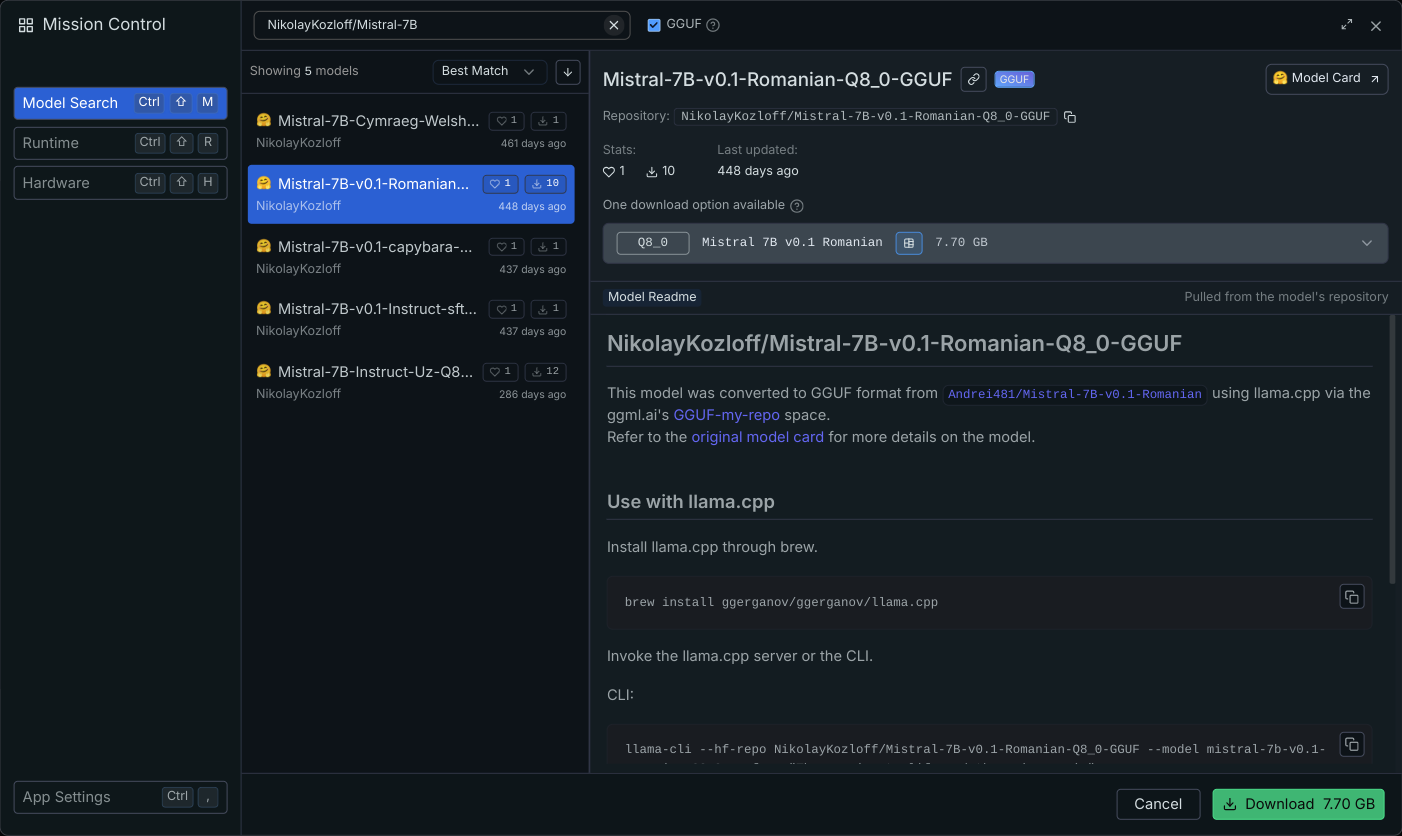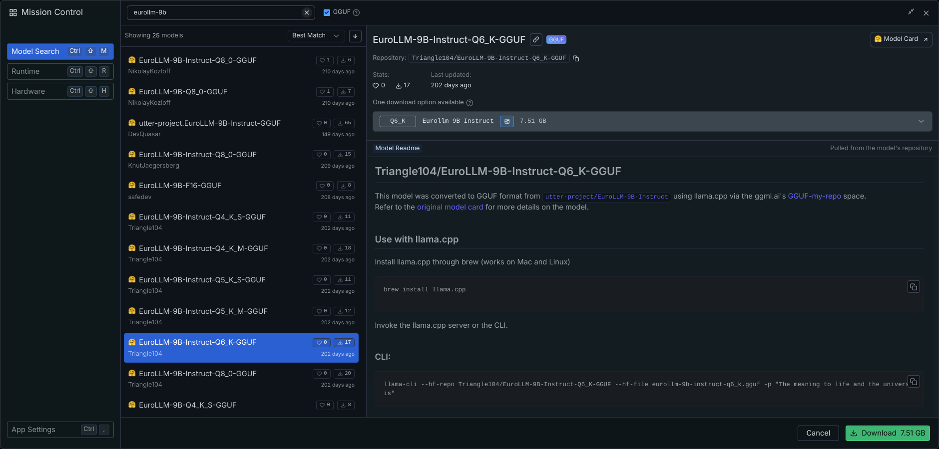 After the Gemini CLI experiment described above, I tried to find a small model that I could run locally on my modest hardware. It had to be a quantized model able to use as little as 8 GB of RAM (I only have 16 GB on one laptop and 8 GB on everything else because I live frugally), and it had to support Romanian.