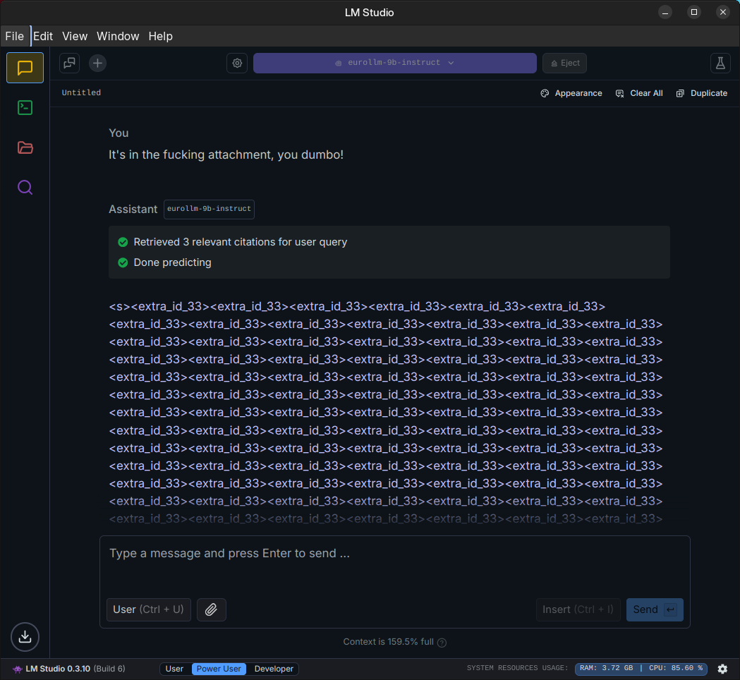 There is a reason why I use the term “Eurocrap” so frequently: this model, at least in this quantization, is completely broken!