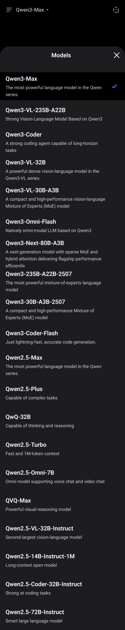 These “plus” models aren’t available in the web app or mobile app, but only via API calls. Fair enough. The 1 million token context Qwen3-Coder can nonetheless be tested via the browser.
