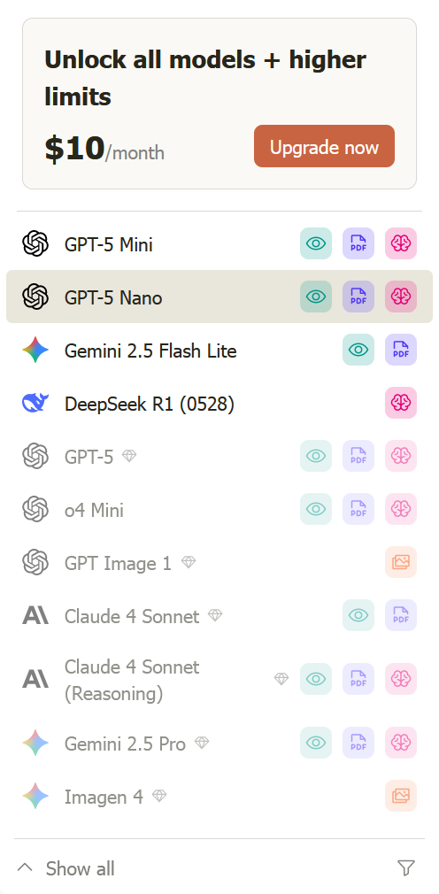 There is also a bug in the UI: each time you start a new chat, the model is reset to GPT-5 Nano: