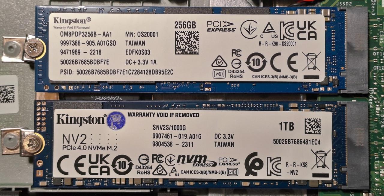 Funny thing, the first slot is PCIe Gen 3, and it hosts the 256 GB SSD it came with, but the free slot, the one that hosts the cheap 1 TB SSD used for /home, is PCIe Gen 4!
