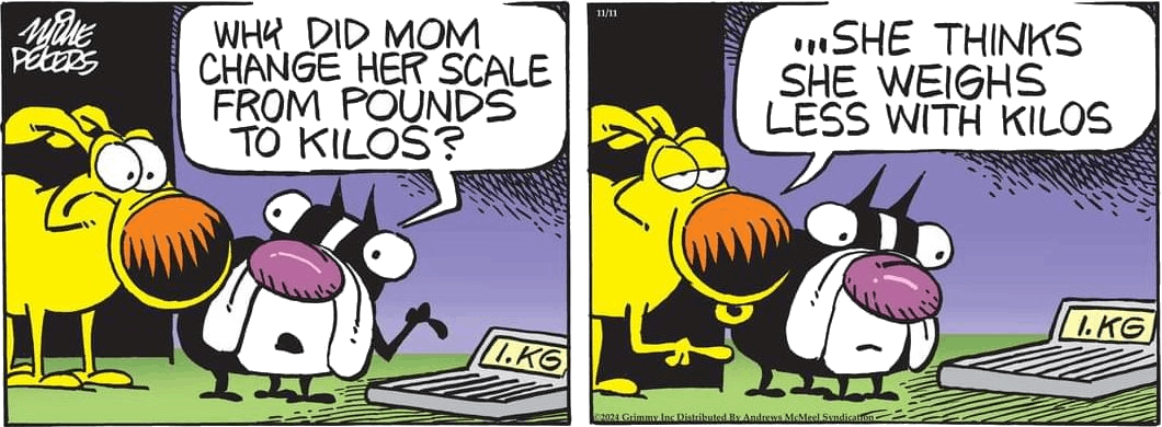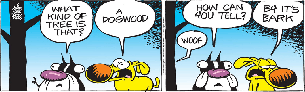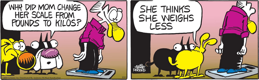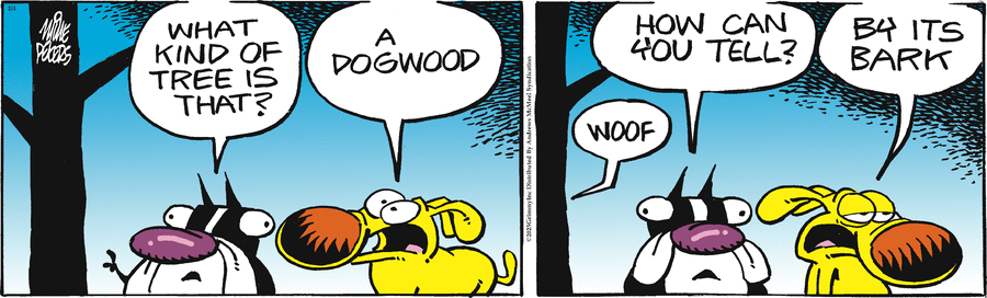 I hesitated to add Mother Goose and Grimm by Mike Peters, because I’m not sure whether he’s illiterate, or if he’s becoming senile. Let me show some examples.
