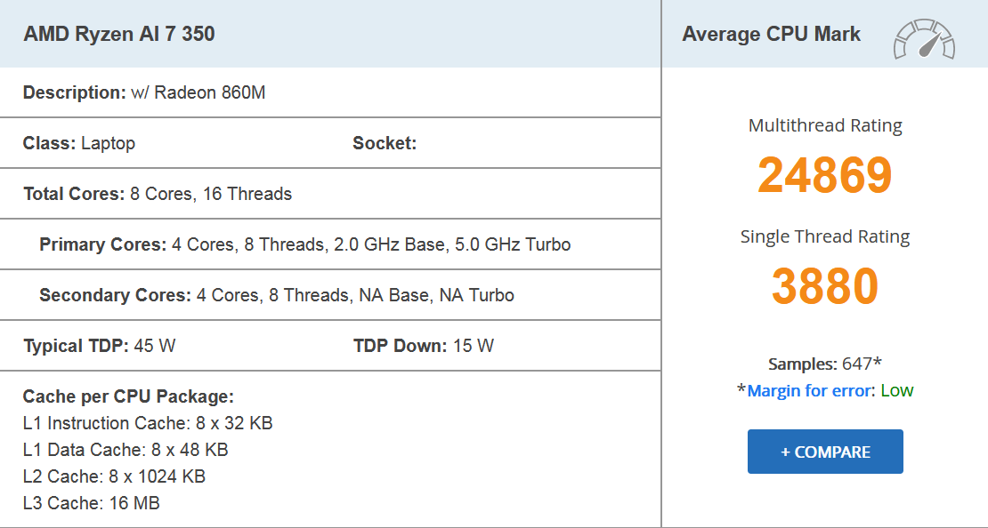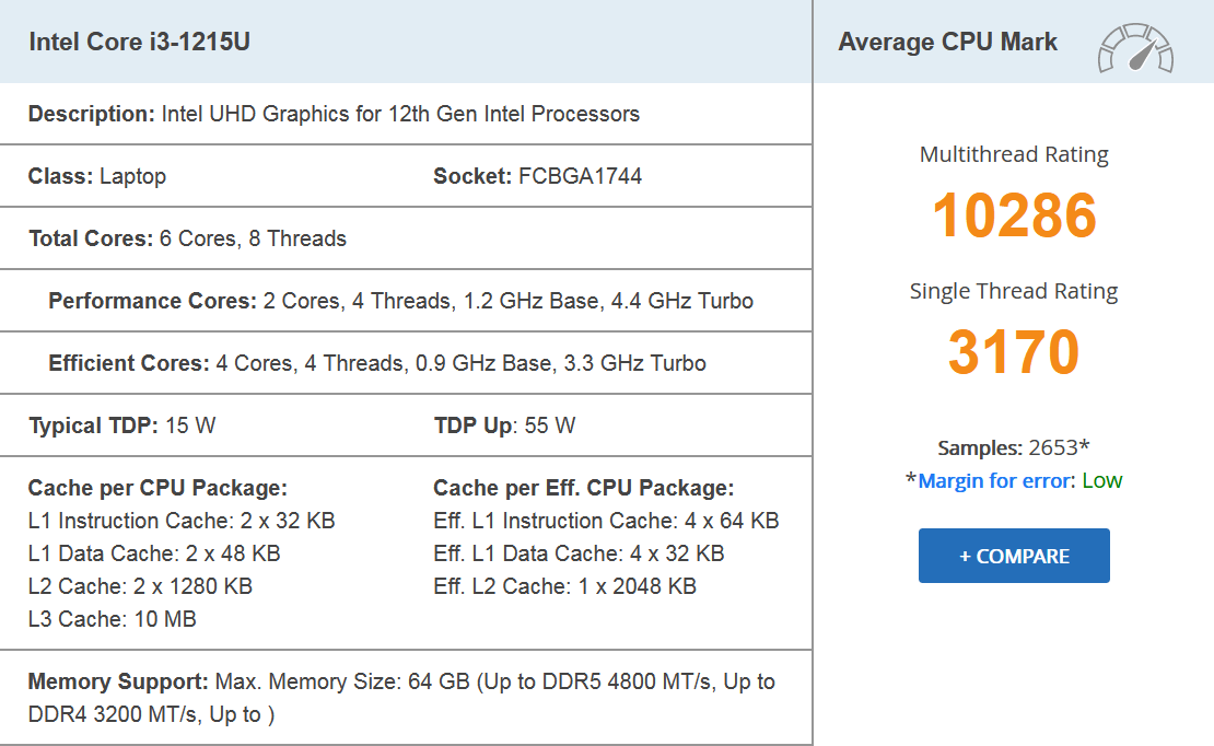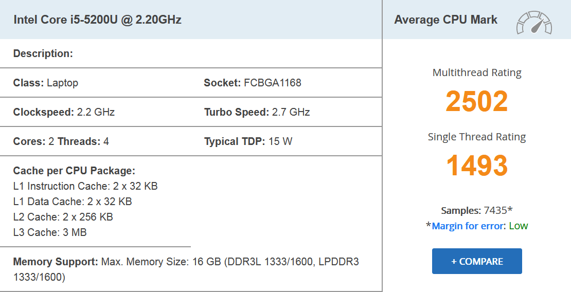 FORTY-TWO SECONDS? Let’s compare the CPUs for these laptops: