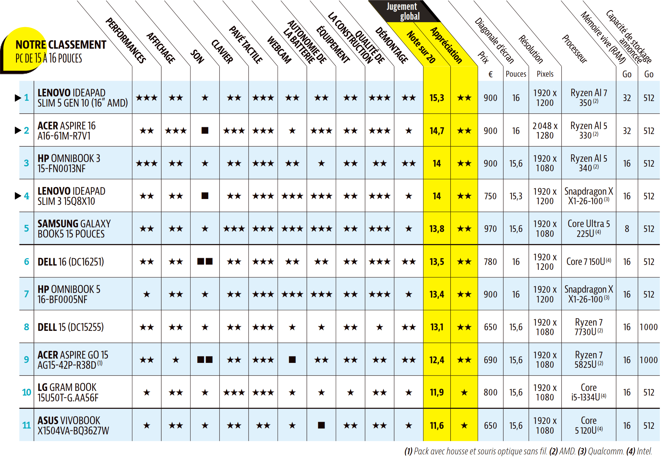 There is a comparative test for laptops in the French magazine Que Choisir, December 2025, at page 35: