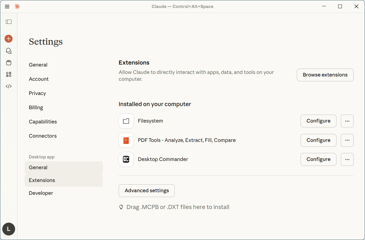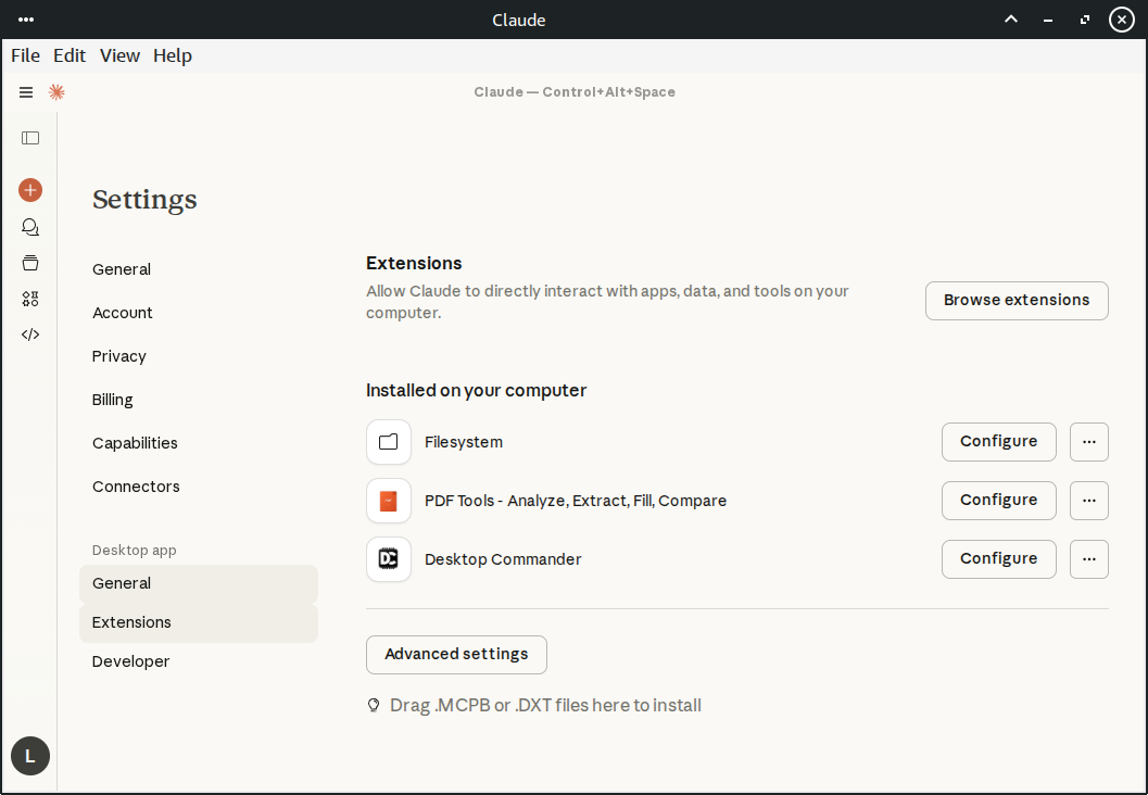 Now, back to XFCE, I wasn’t sure this was everything I needed to transform Claude Desktop to a poor’s man Kiro, so I just asked it: