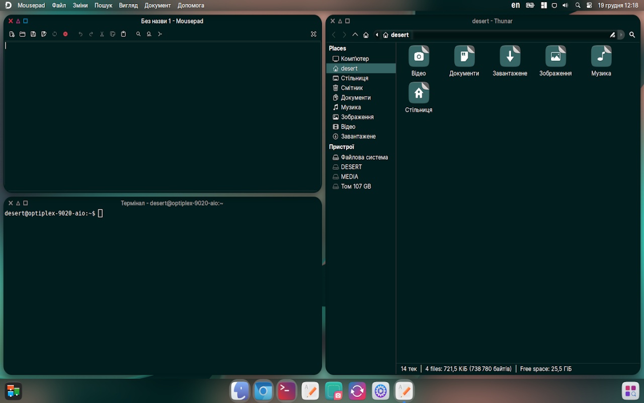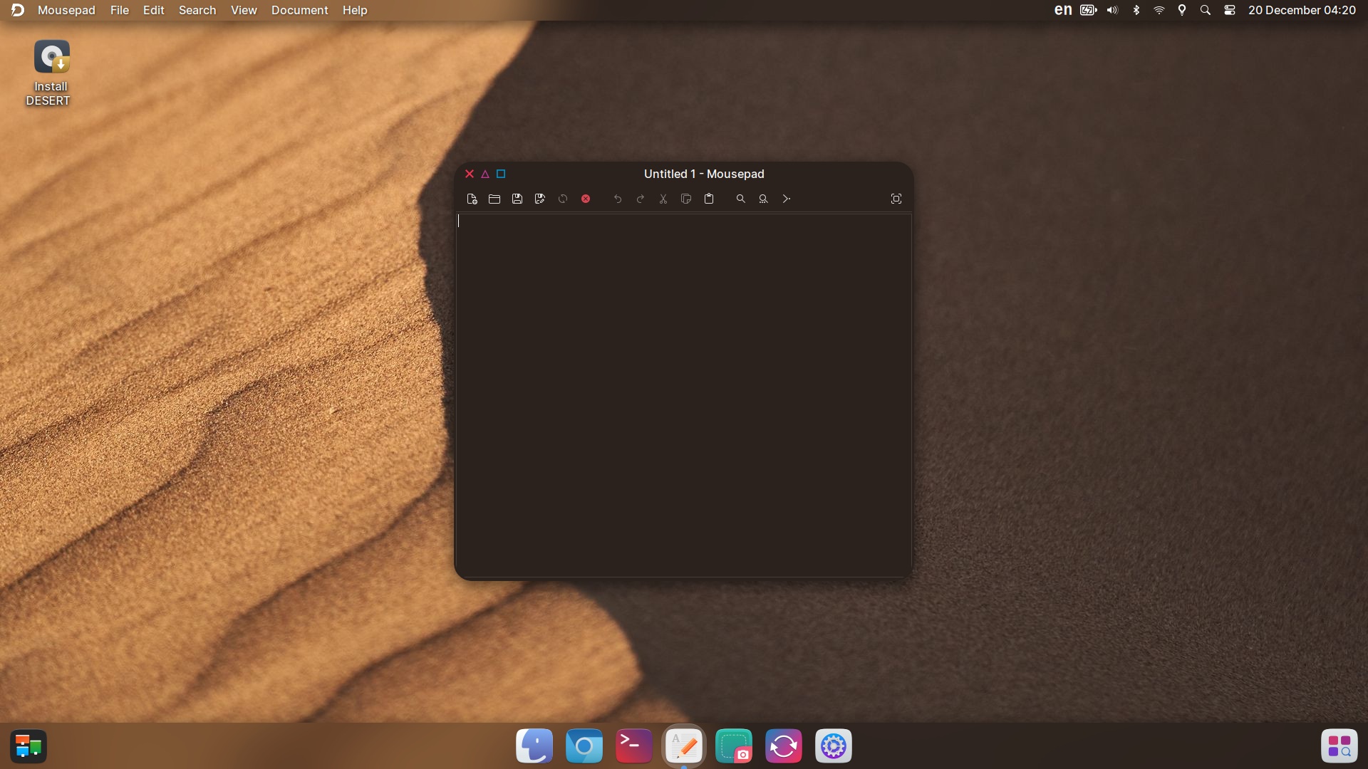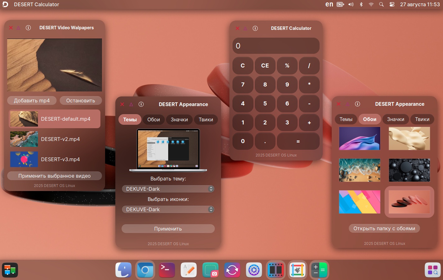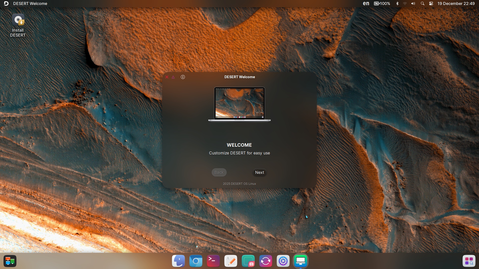 DESERT OS Linux (DistroWatch, website, SourceForge) is an Ubuntu LTS-based distro that uses XFCE 4.20 in a way that tries (what else?) to mimic macOS.