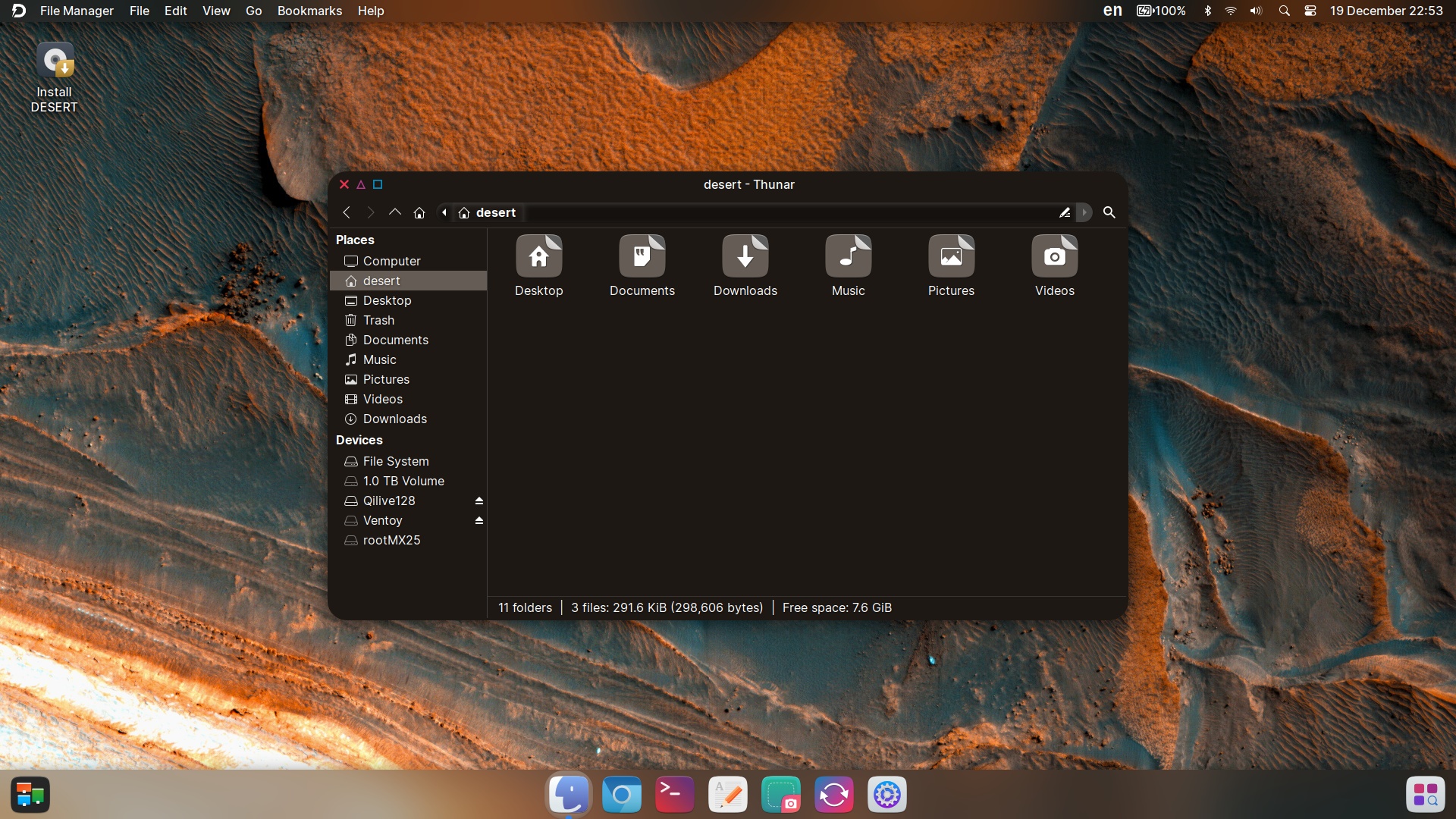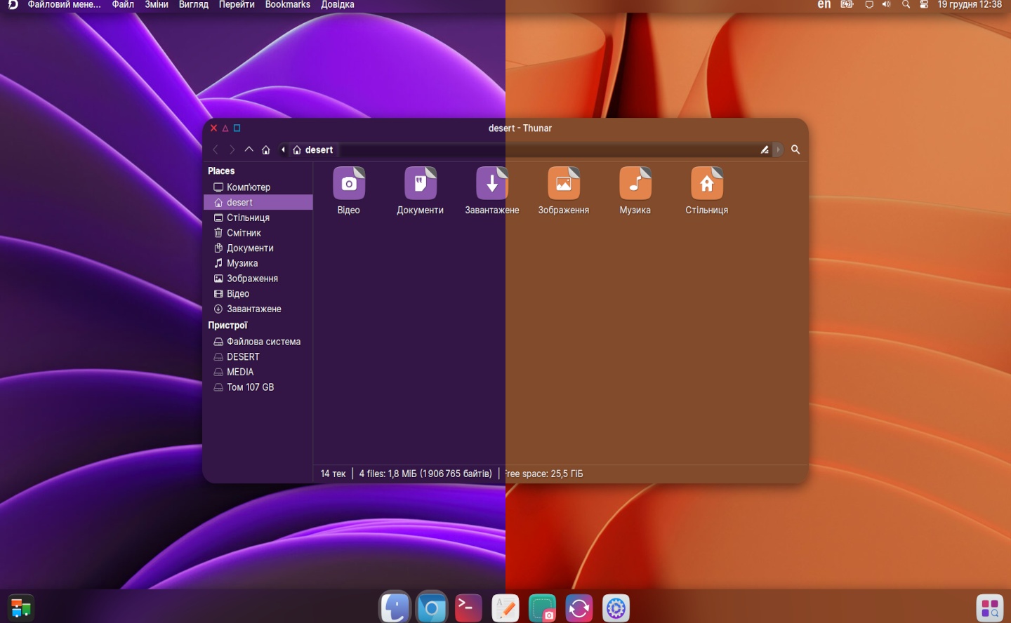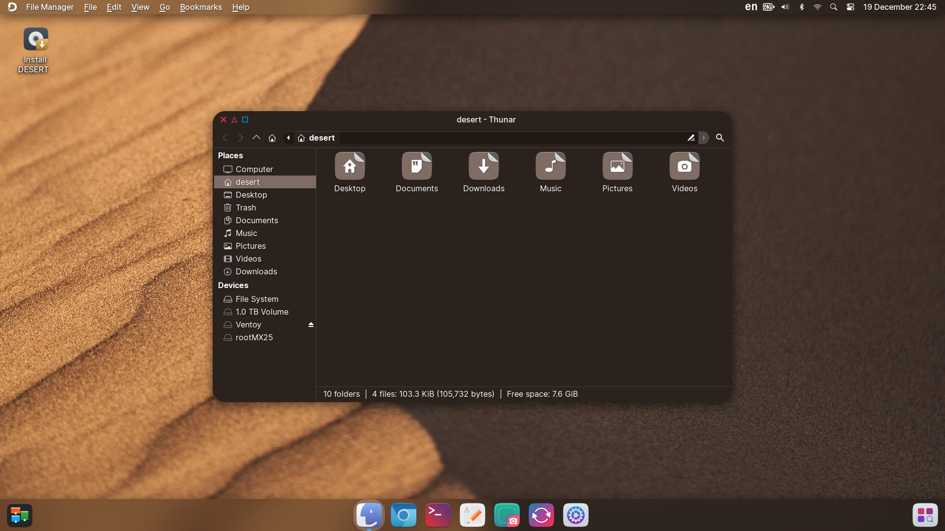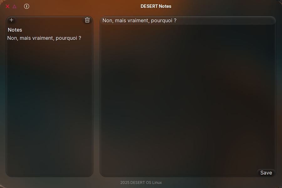 DESERT OS Linux (DistroWatch, website, SourceForge) is an Ubuntu LTS-based distro that uses XFCE 4.20 in a way that tries (what else?) to mimic macOS.