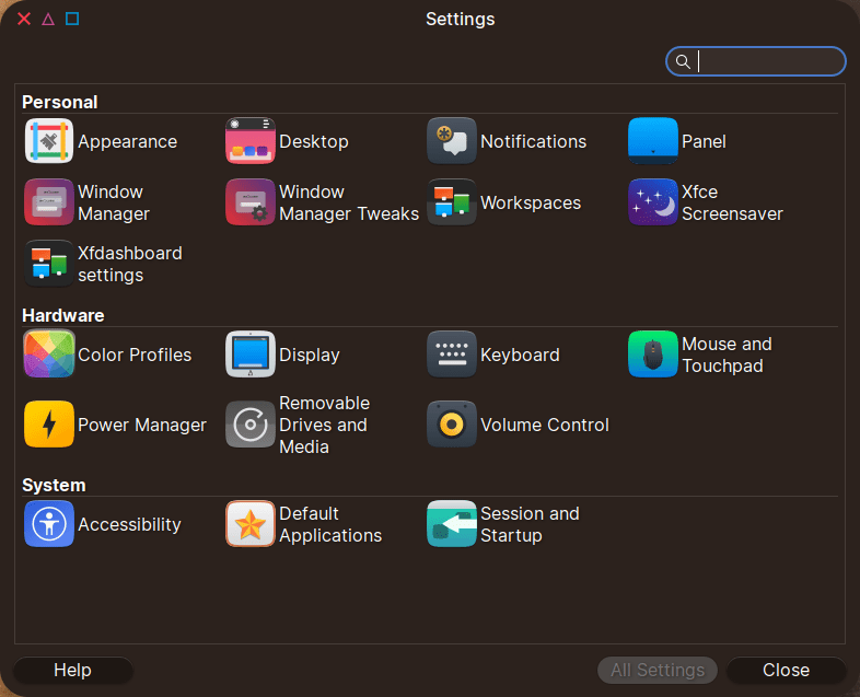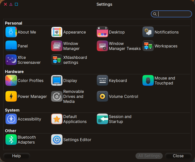 Otherwise, as expected, Mousepad has a global menu, Thunar has a global menu, there is a GNOME-like and tablet-like etc. array of big icons, and everything is nice if you’re into this kind of thing (the font is Inter):
