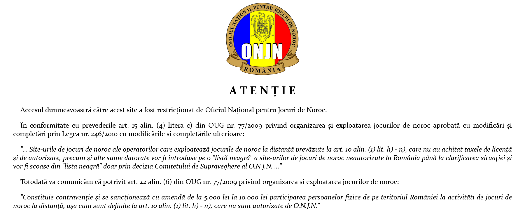 UPDATE: Cretinii au actualizat pagina, iar acum sigla ONJN se afișează corect.
