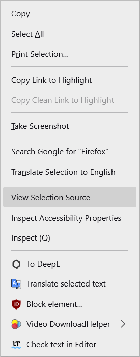In this particular case, it worked, but this is not the case for other websites. Firefox is pathetic here, but I need it specifically for “View Selection Source”!