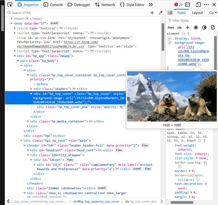 Firefox has a completely different understanding of “Application,” so in most cases that panel won’t display anything. The only way to access an image that’s not available on a right-click is to try to pick it in a page’s DOM by “really inspecting by hand”: