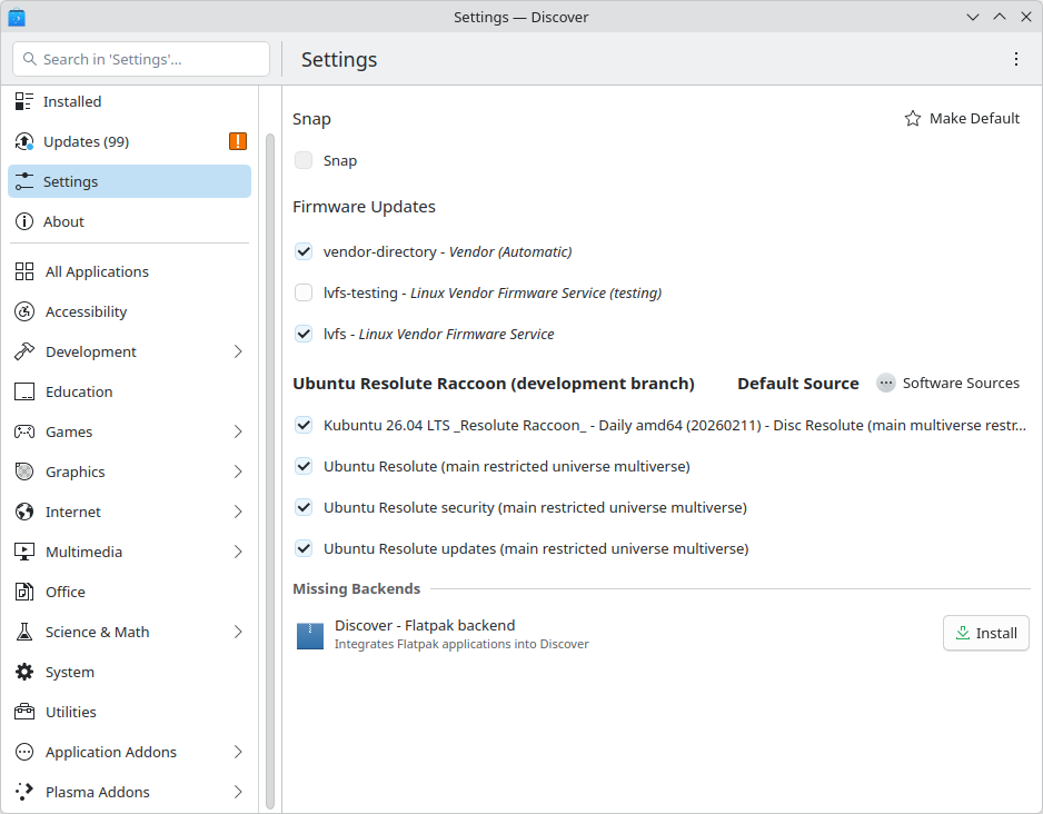 On the other hand, the Qt-based flavors don’t need it, as repos can be managed by Discover: