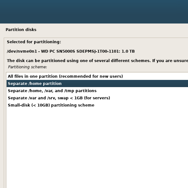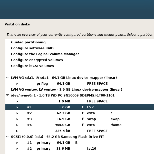Other than the need to manually redefine the partitions, no other troubles with Debian’s graphic installer. (I haven’t used the text one since the times when I was installing Slackware or FreeBSD in the late 1990s!)
