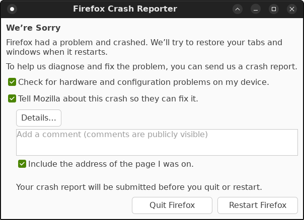 This aside, I was browsing the net with the ultra-stable Firefox ESR, when this happened: