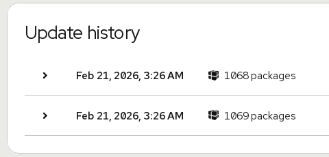 The number of altered packages doesn’t make any sense. That “double update” is the initial update after the installation from the Live KDE ISO. Unfortunately, dnf history seems to ignore it (them?), whereas Cockpit doesn’t care about normal transactions. WTF? If I have to use the CLI to roll back normal dnf transactions, what’s the fucking purpose of the fucking Cockpit?!