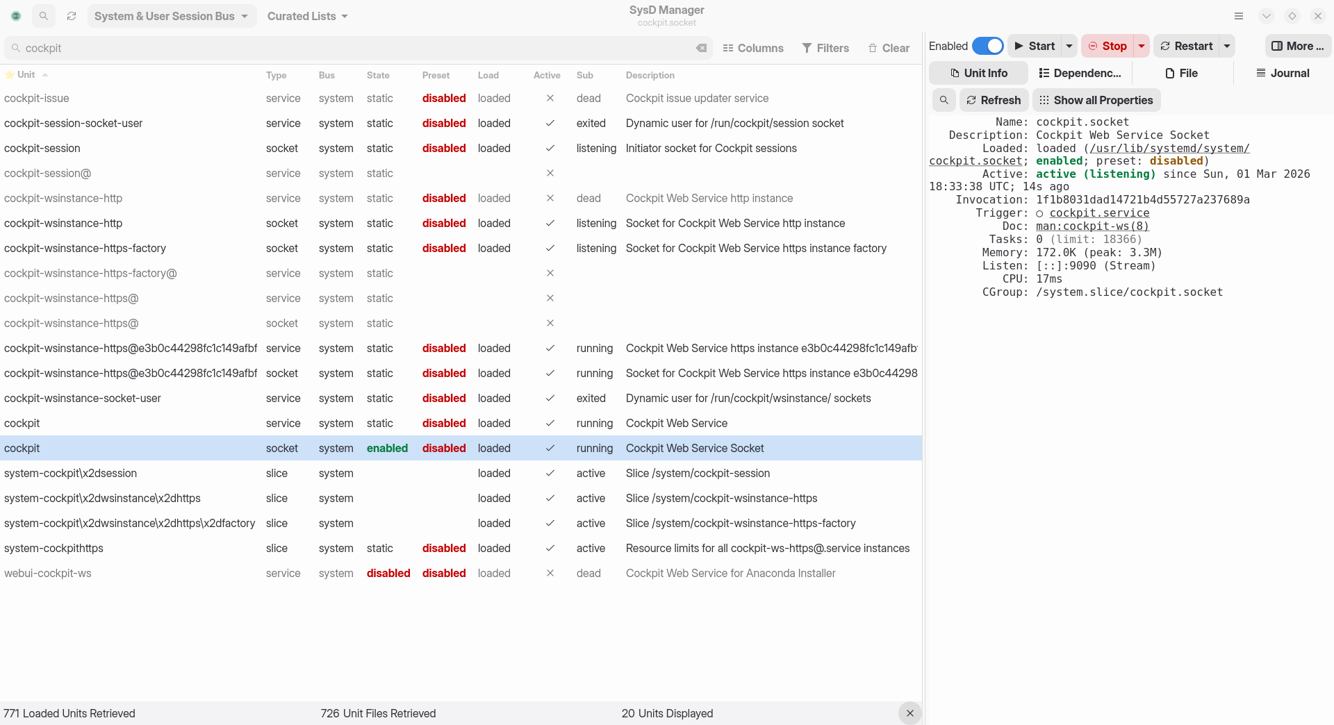• Currently, Red Hat pushes Cockpit for systemd management, although it’s server-oriented and browser-based.