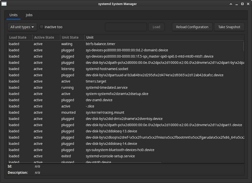 systemadm (“systemd System Manager”), part of systemd-ui 3-5 in Arch (preinstalled in Garuda XFCE):