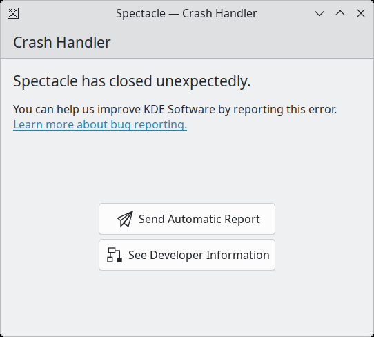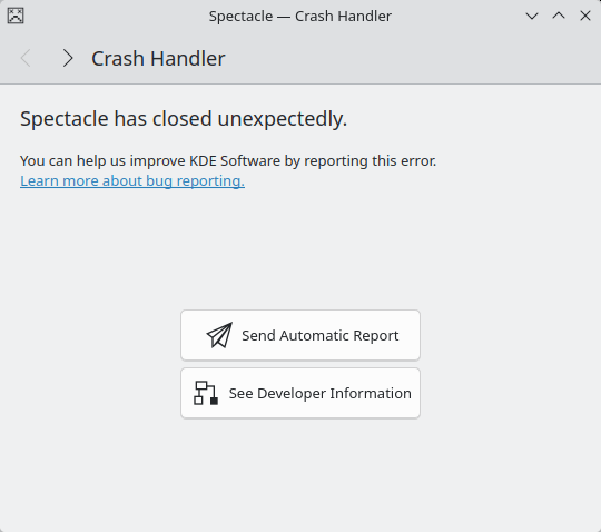 Then, Spectacle crashed “with success” after having saved the image, or even if I decided not to save the image but to close Spectacle: