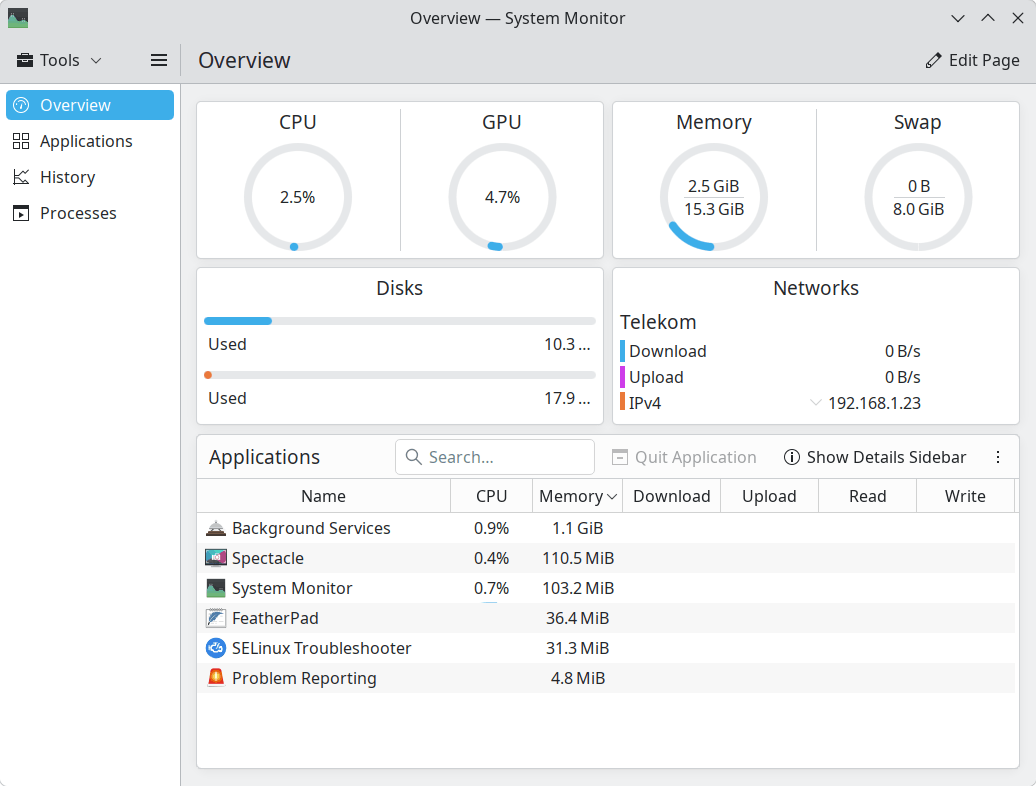 But on my installed Fedora 43 KDE, both with Plasma 6.6.1 and with the newer 6.6.2, I noticed a stupid design bug in System Monitor. Can you see what it is?