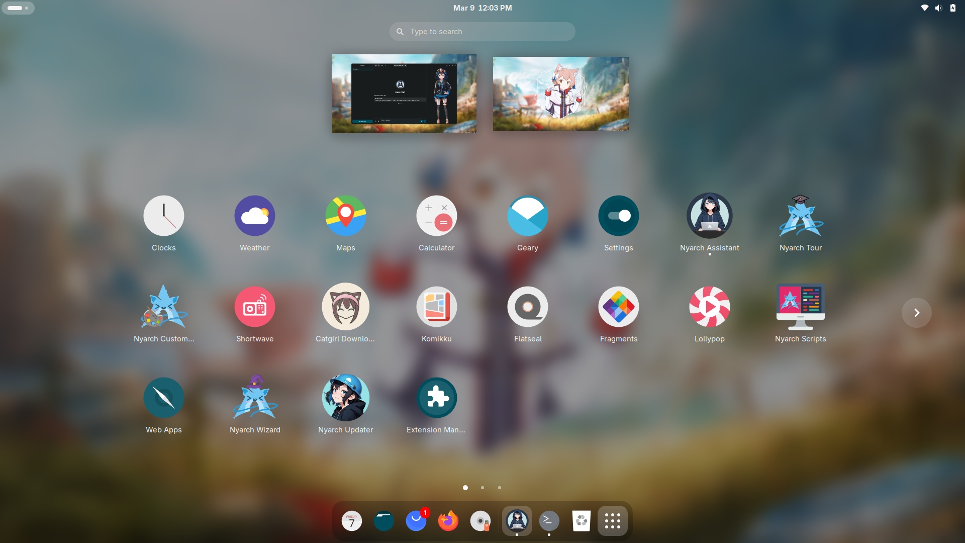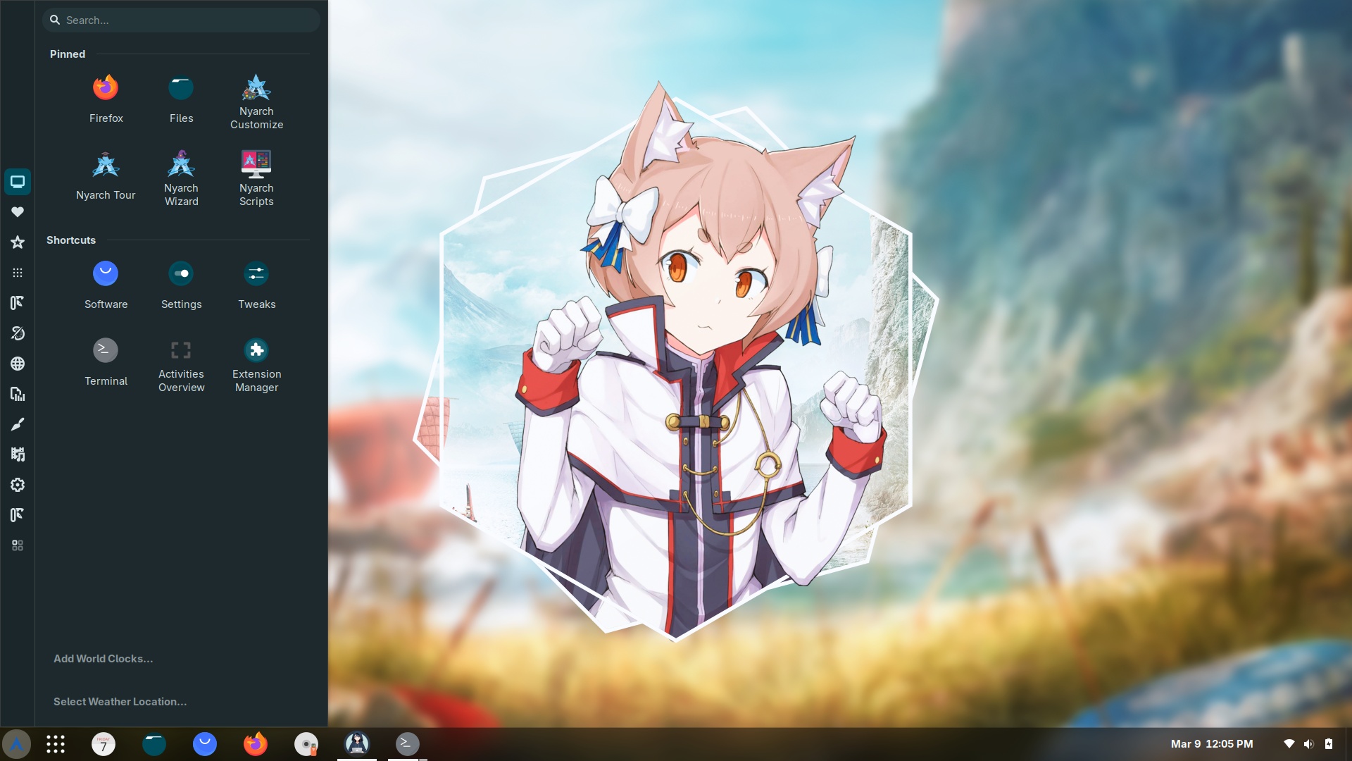 Nyarch Linux is an Arch-based, rolling-release Linux distribution designed for “weebs”, or non-Japanese persons interested in anime, manga, cosplay and other aspects of the Japanese culture. Some of the distribution’s custom features include “Catgirl Downloader” which downloads random pictures of cute catgirls, “Nyarch Assistant”, a digital companion which helps with a range of computing and real-life tasks, “Material UwU” which serves as a desktop wallpaper and theme chooser, and “Nyarch Customize”, a tool to facilitate desktop layout customisations and animations. Besides the standard release, the project also provides a special variant with pre-configured proprietary NVIDIA display drivers; both come with the GNOME desktop.