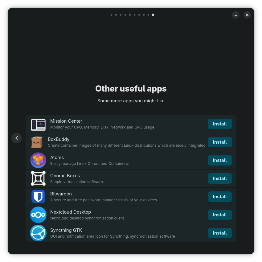 Nyarch Wizard includes suggestions of apps: