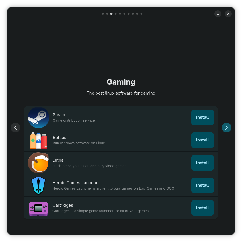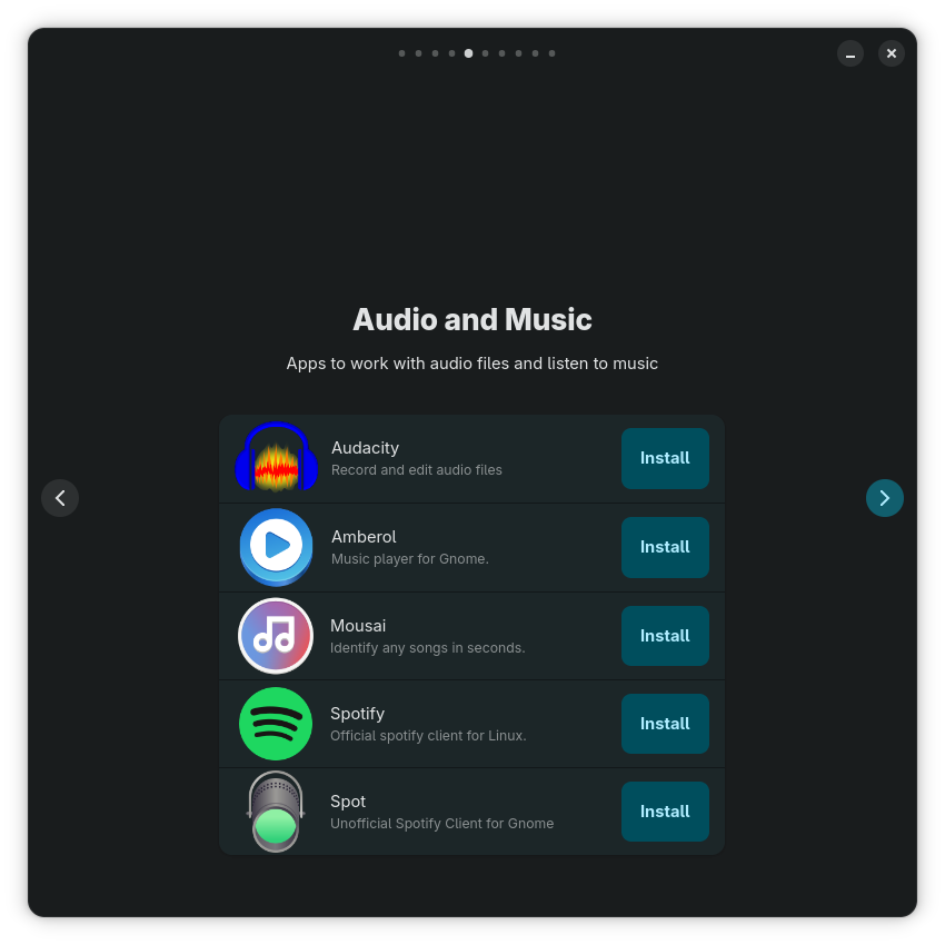 I won’t judge them; they’re a good introduction to some major apps, albeit biased. There’s a screen dedicated to Audio and Music, another one for Video Editing, but nothing for video playing?! Of course, GNOME Video Player (Showtime) is preinstalled, but there are alternatives, hello? Dafuq.