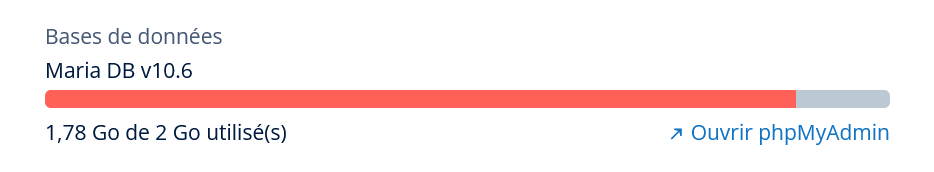 Upon his return, that admin was completely useless. He pointed to the same “help” page already indicated by Michel, Dépassement de capacité de la base de données MySQL ou MariaDB.