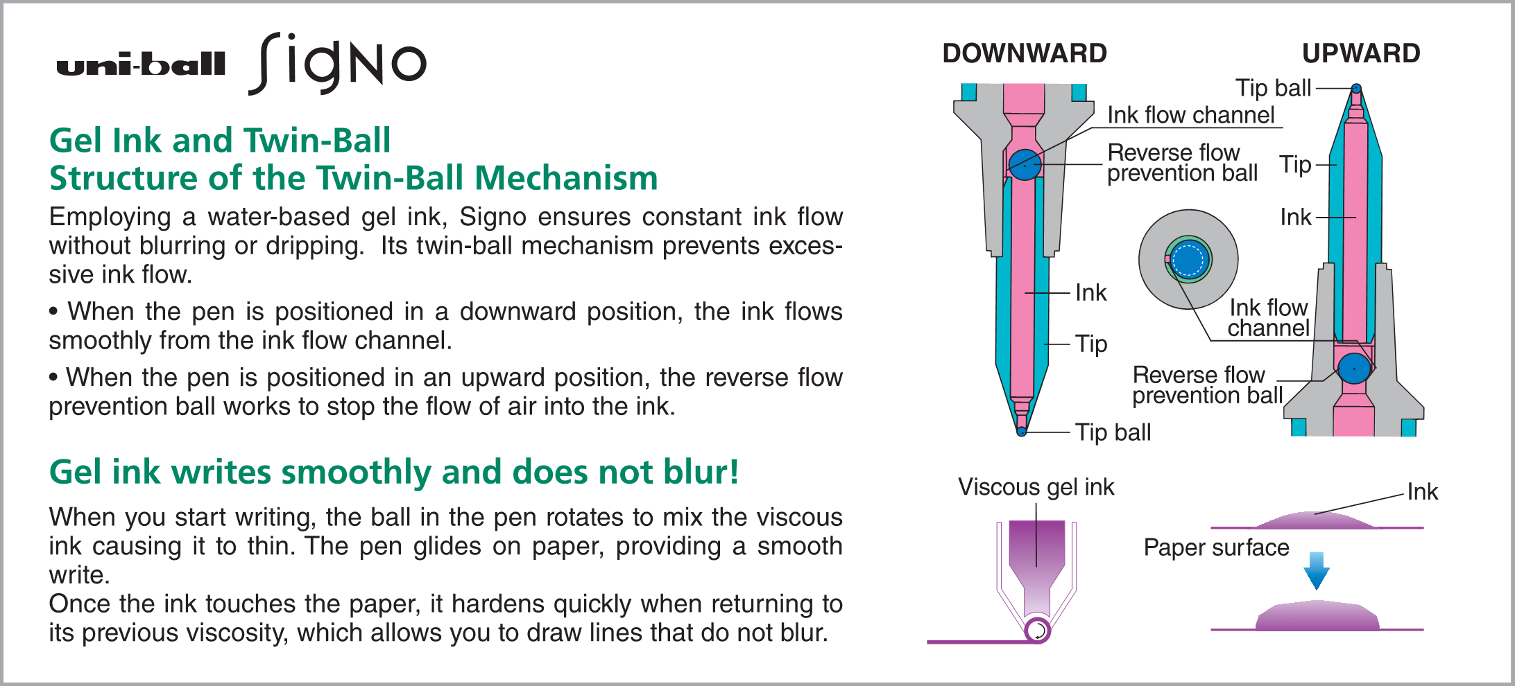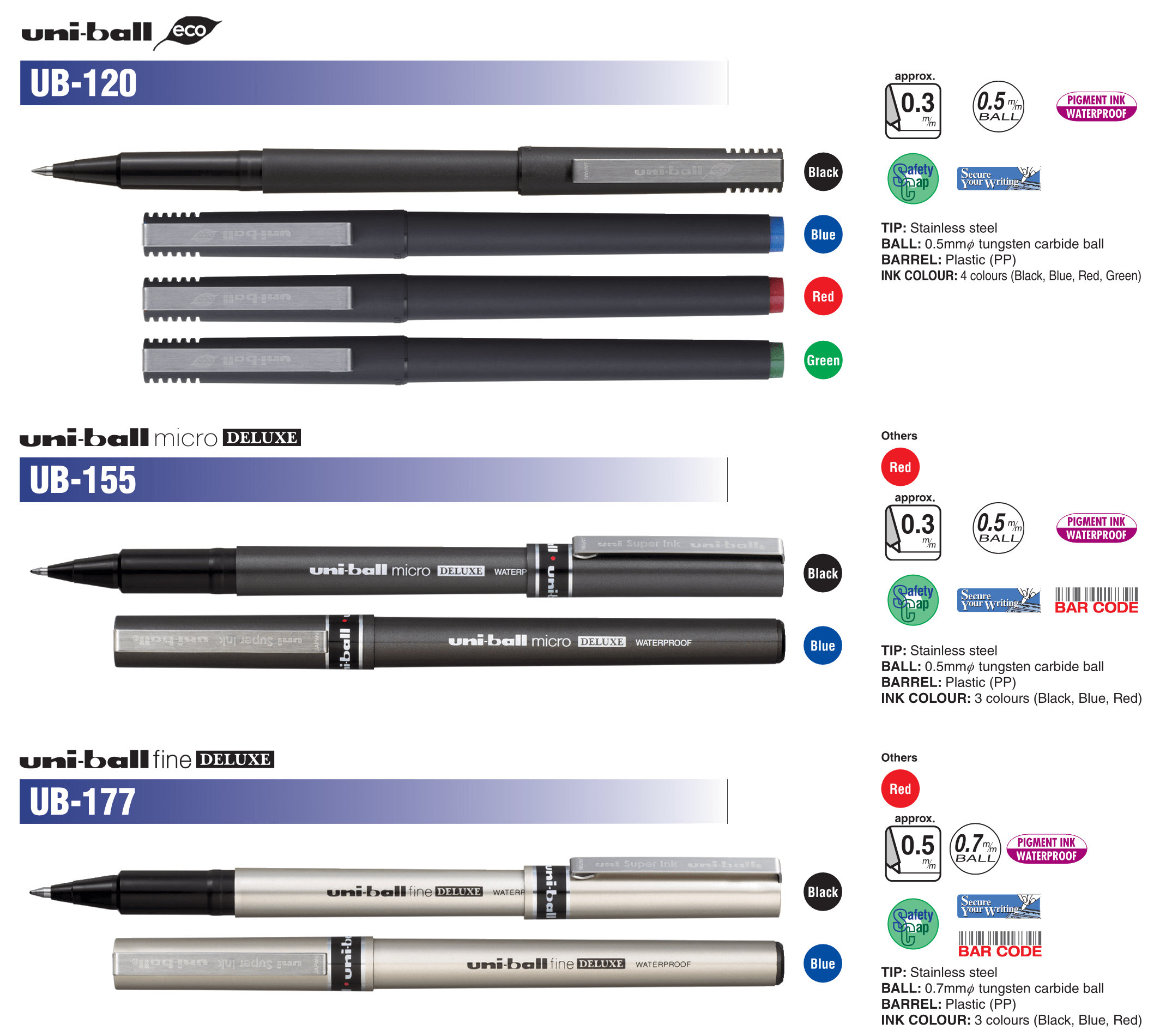 | 2 | Liquid ink | eco | UB-120 | 0.5mm | 0.3mm | N/A | Excellent for writing with fine strokes. |