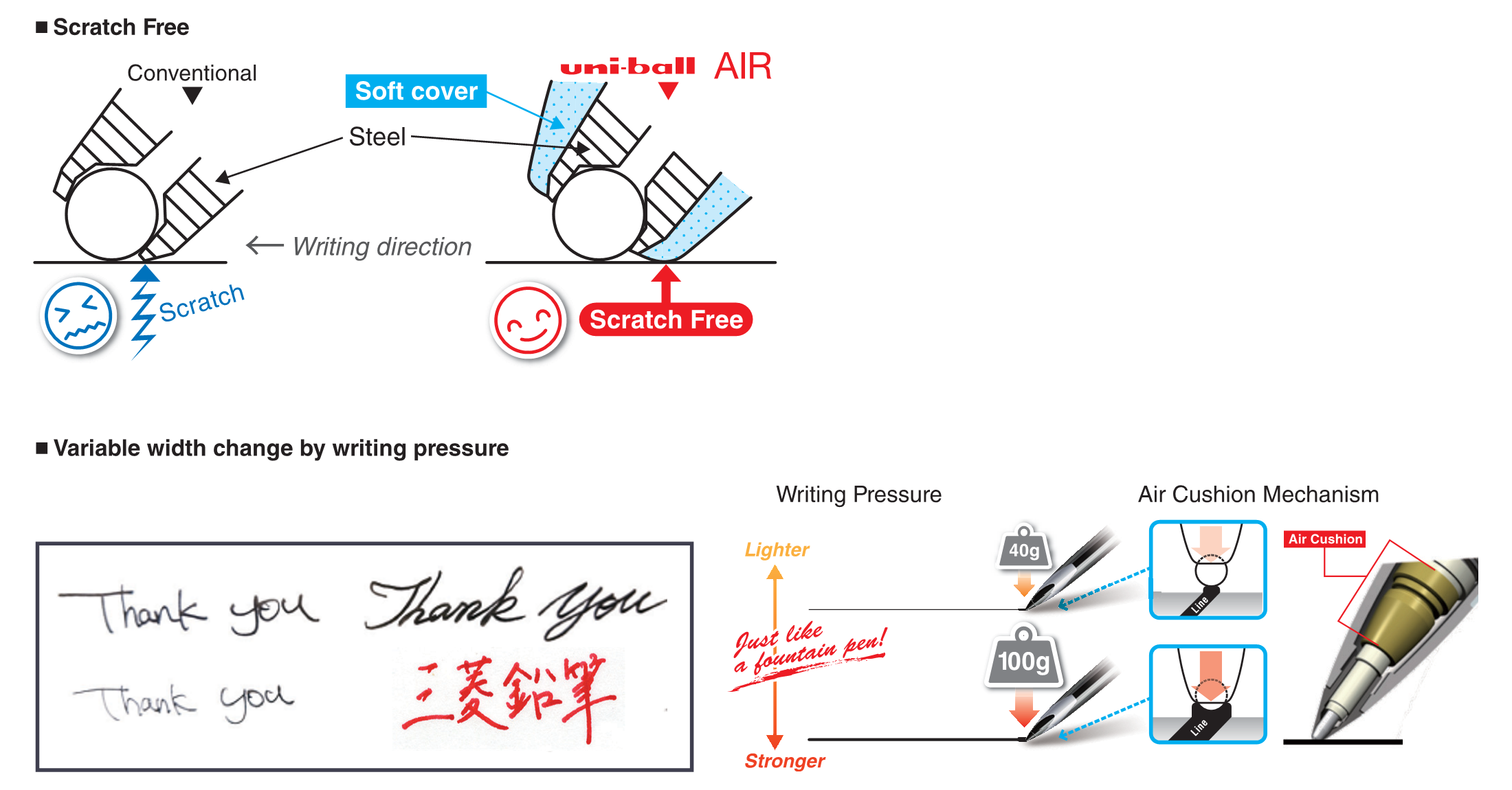 I fell in love with uni-ball’s latest technology as soon as I purchased my first AIR MICRO pen! Liquid ink, baby! “Revolutionary Hybrid-Tip Technology,” they say.