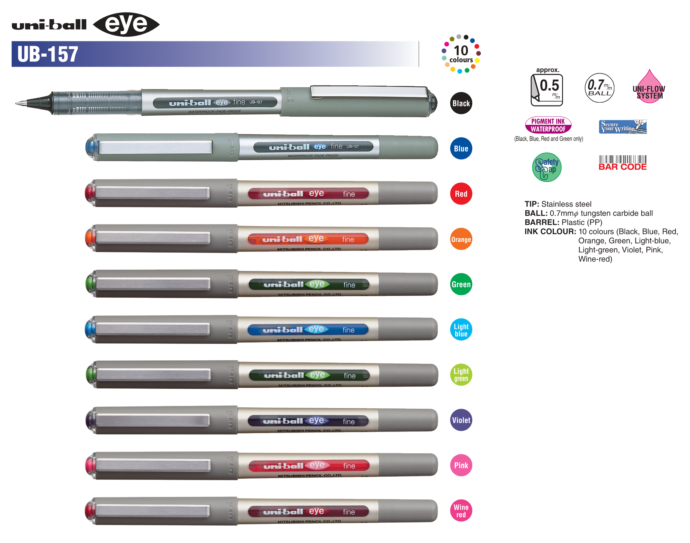 | 3 | Liquid ink | eye fine | UB-157 | 0.7mm | 0.5mm | N/A | Too thick stroke in practice. |