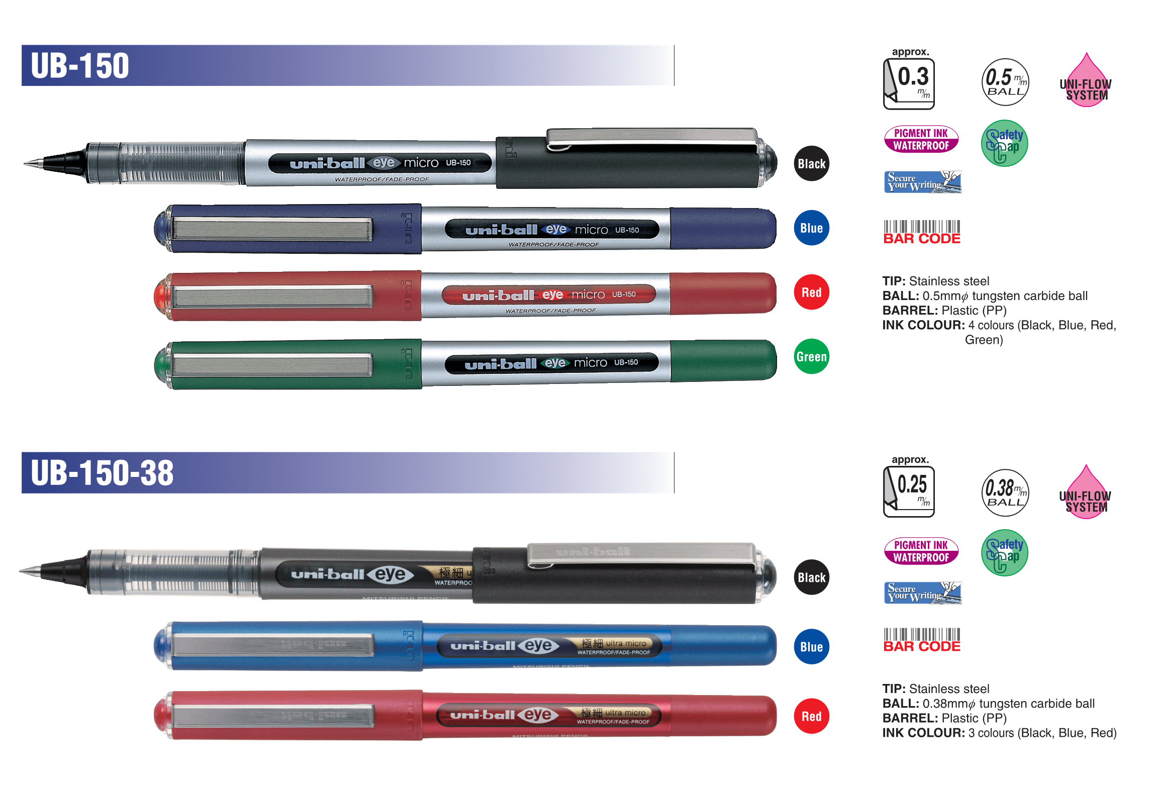 | 4 | Liquid ink | eye micro | UB-150 | 0.5mm | 0.3mm | N/A | Prefer the micro! |