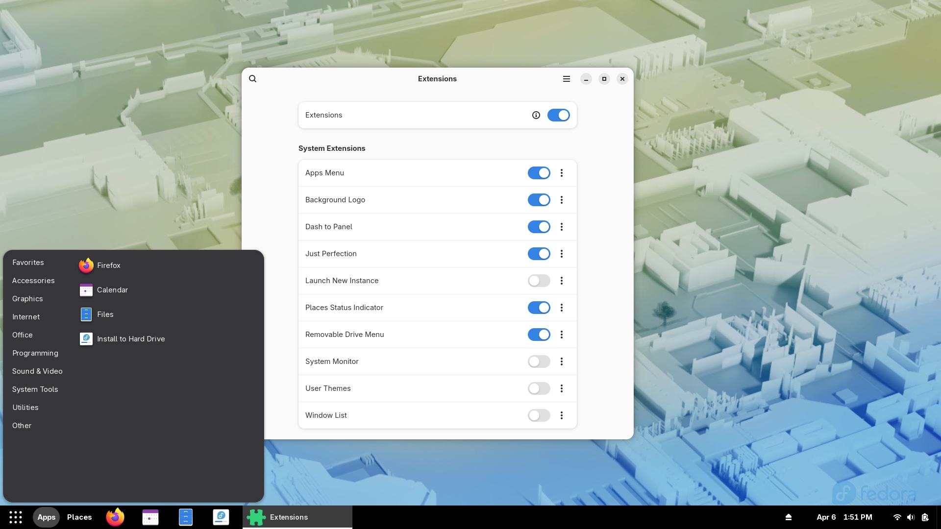GNOME extensions in Fedora 44