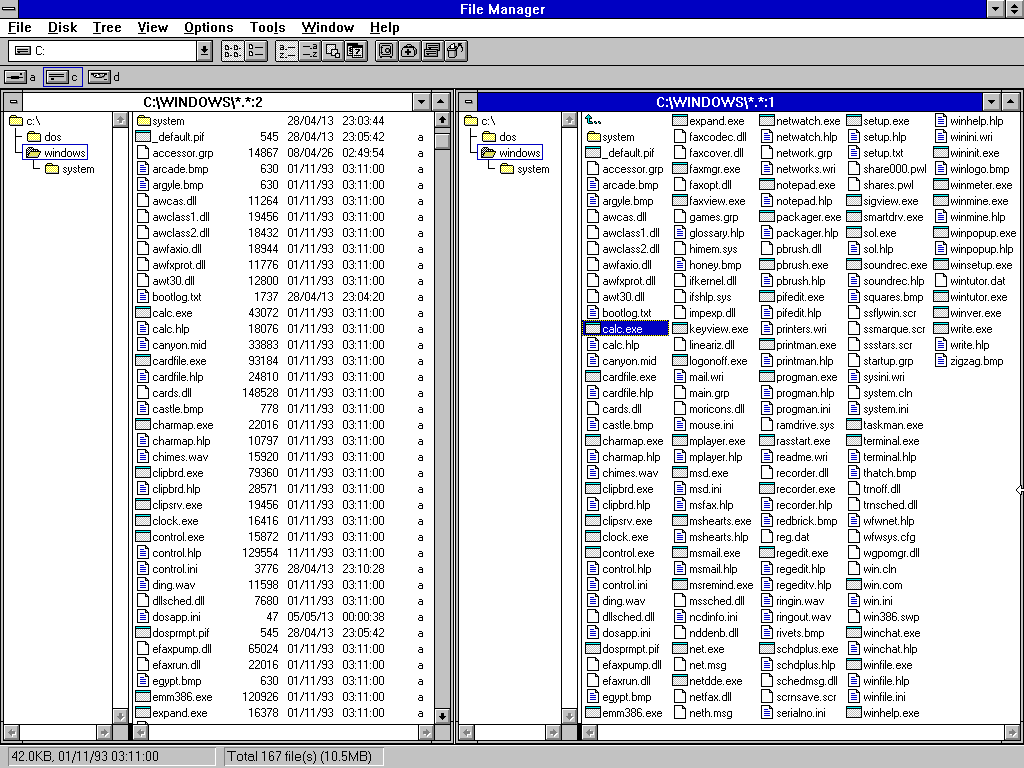 When Windows for Workgroups 3.11 was released on November 8, 1993, the file manager had a toolbar that made changing the view even easier: