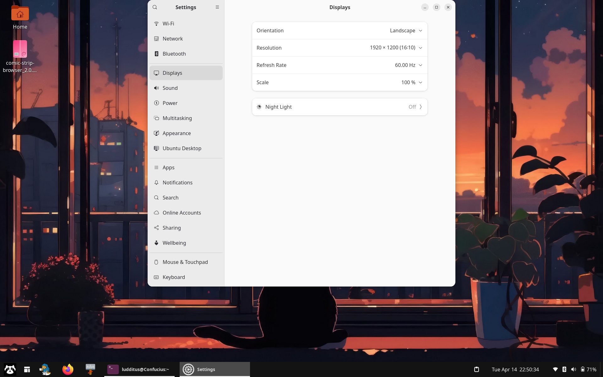 Ignore the 1536×716 size; it refers to the size of the comic. What matters is the “@ 200%,” which shows the display scaling. But this laptop had a fractional 125% scaling, because this is GNOME’s default on small screens!