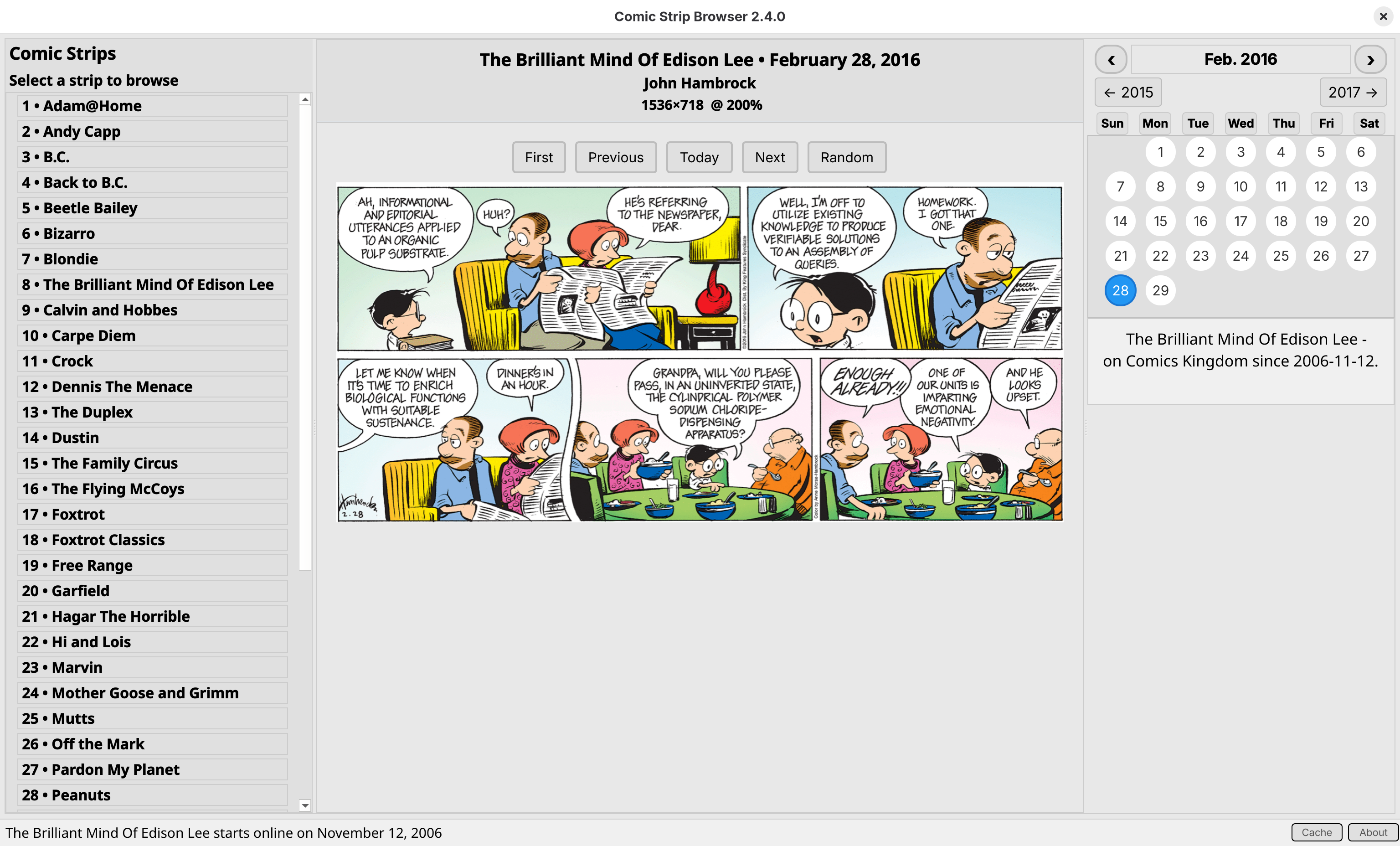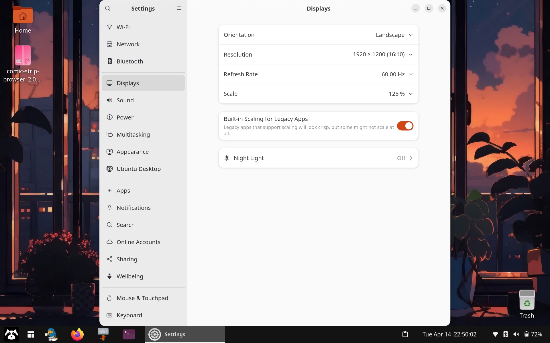 I hate fractional scaling, which usually is set to 125% on laptops, unless you’re using a 14″ laptop with Windows, which defaults to 150% in such a case. I prefer 100% under Linux (I can change the fonts, thank you, even if I need to use gnome-tweaks), but I needed to see how ComicStripBrowser version 2 behaves with fractional scaling under Linux, so there.